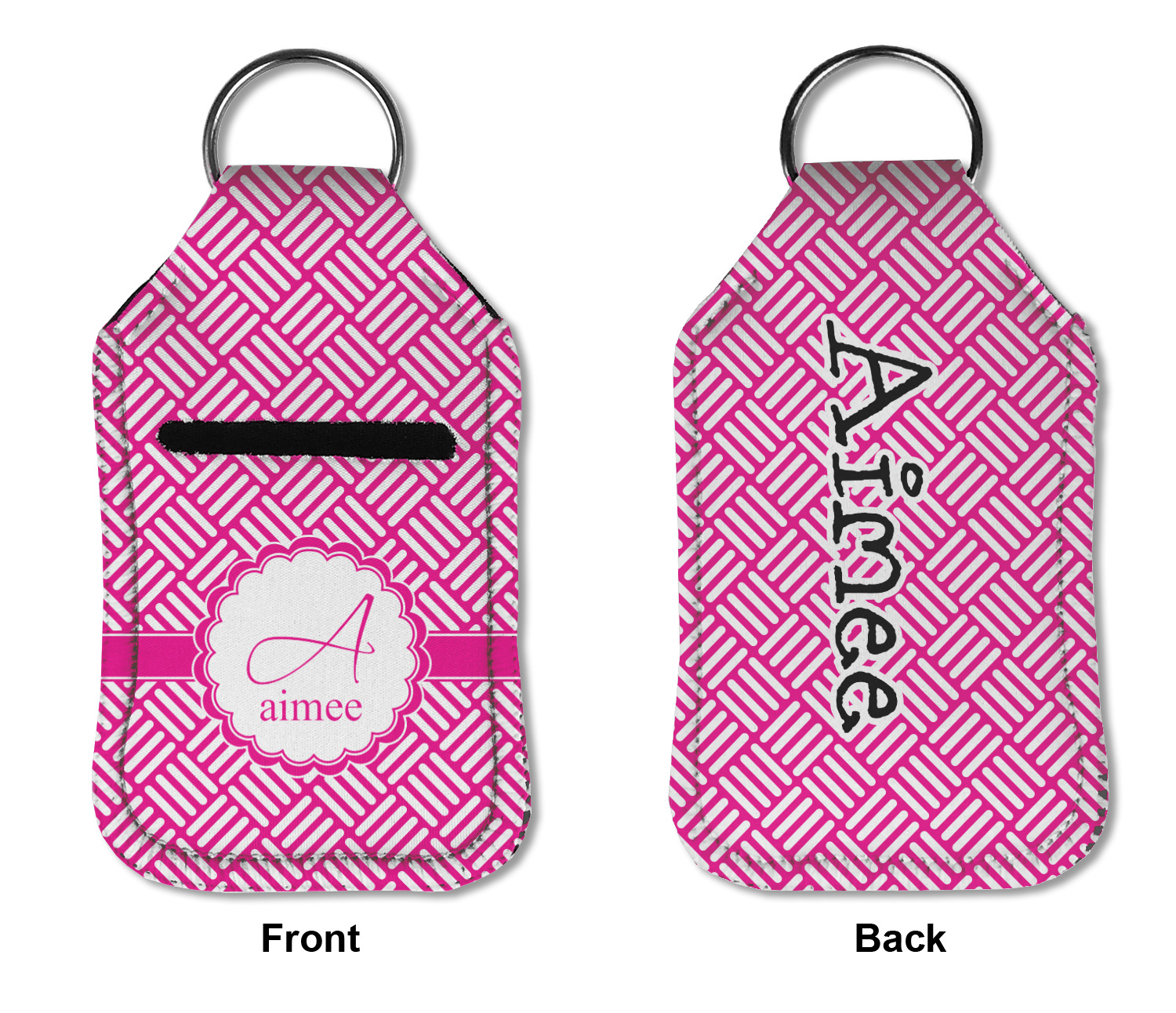 Each hand sanitizer holder comes with its own empty travel-sized, refillable hand sanitizer sure to fit snug in your customized sanitizer case! Our hand sanitizer cases are a durable, yet soft neoprene material sure to last any daily activities or travel agenda. Customize and personalize a hand sanitizer bottle holder with one of our two sizes - small (4.25" x 2.25") or large (5.5" x 2.5"). Each travel sanitizer holder comes with a keyring for attachment on bags, keys, or more!