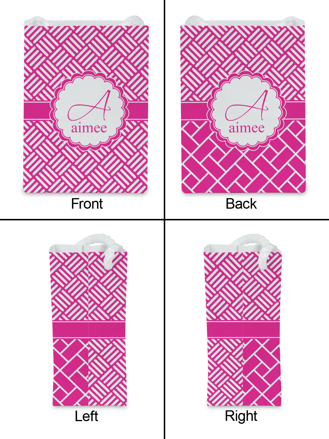 These jewelry gift bags are available in two finishes - matte or gloss. The are digitally printed in full color, then cut down to size, scored & folded. A single handle is attached.