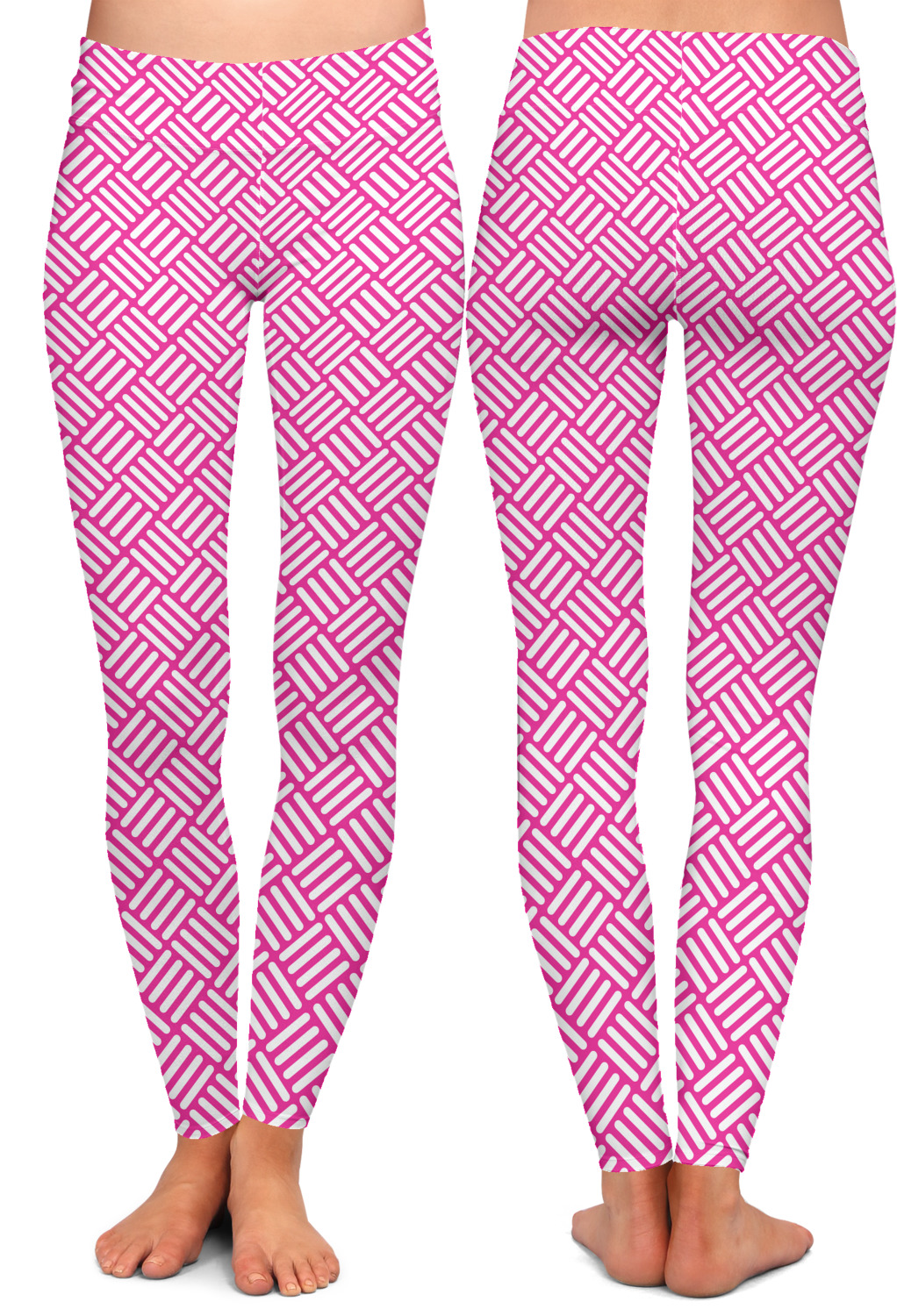 In honor of social media's latest fad, we have named this retro stripes design, "Hashtag." Featuring white stripes set at 90° angles on a hot pink background, this design celebrates both modernity and high fashion.