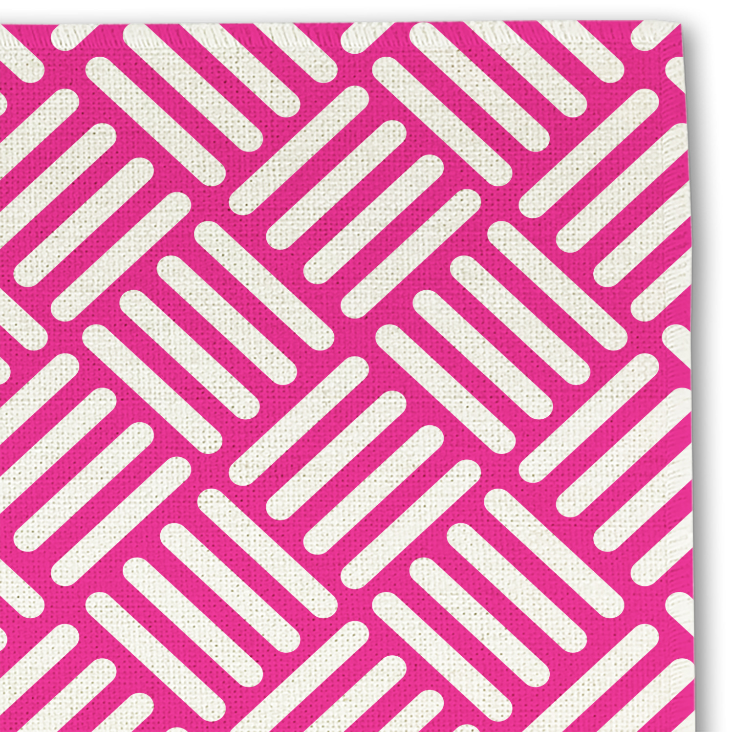 In honor of social media's latest fad, we have named this retro stripes design, "Hashtag." Featuring white stripes set at 90° angles on a hot pink background, this design celebrates both modernity and high fashion.