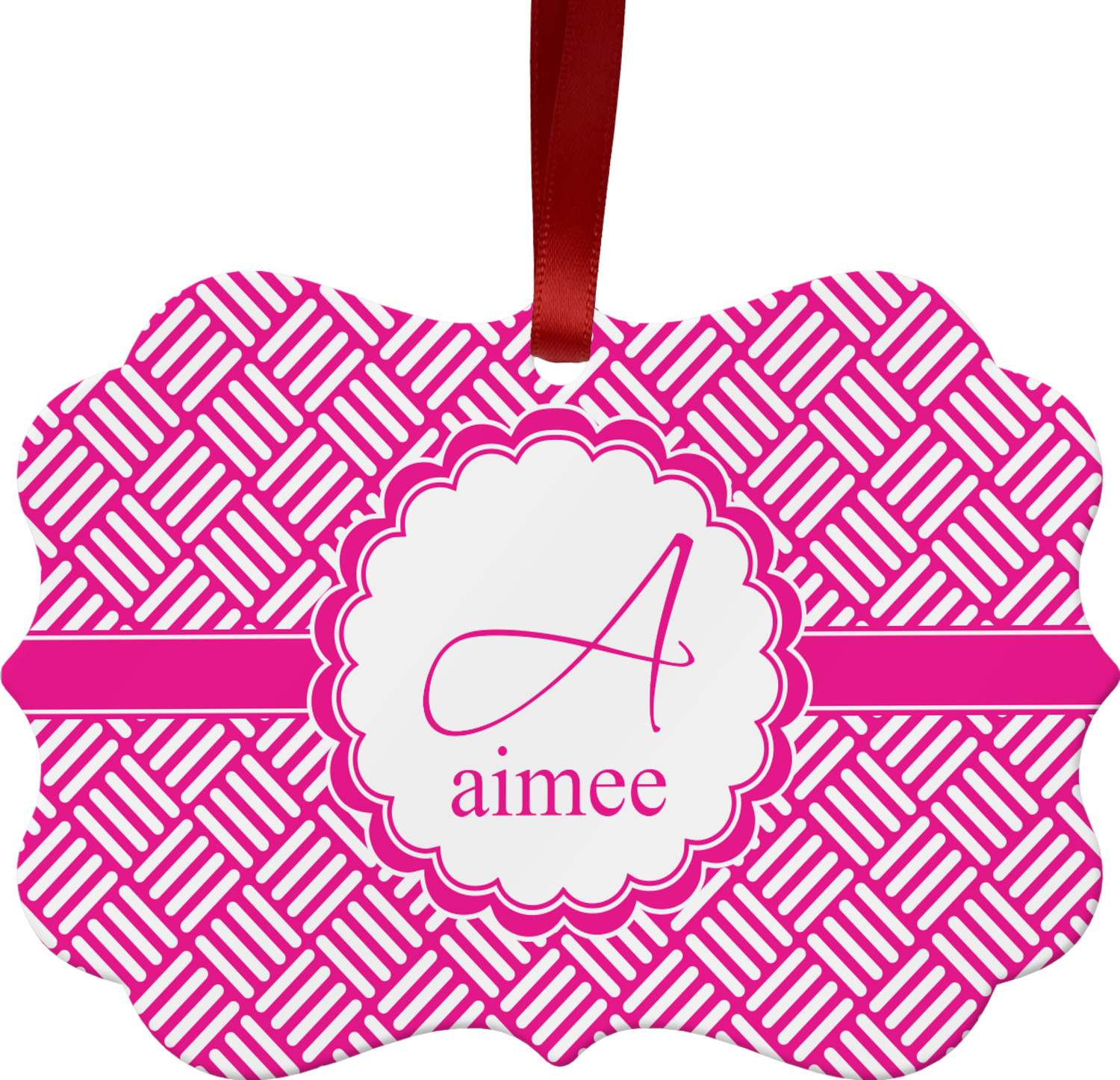 In honor of social media's latest fad, we have named this retro stripes design, "Hashtag." Featuring white stripes set at 90° angles on a hot pink background, this design celebrates both modernity and high fashion.