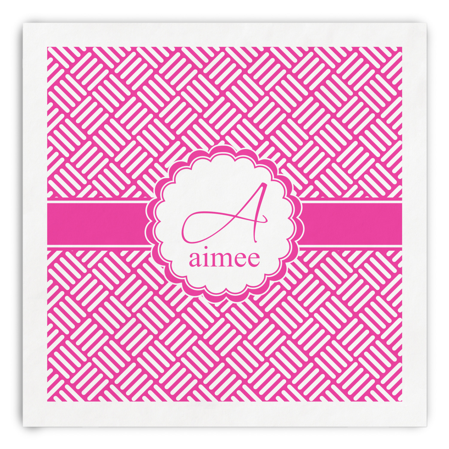 In honor of social media's latest fad, we have named this retro stripes design, "Hashtag." Featuring white stripes set at 90° angles on a hot pink background, this design celebrates both modernity and high fashion.