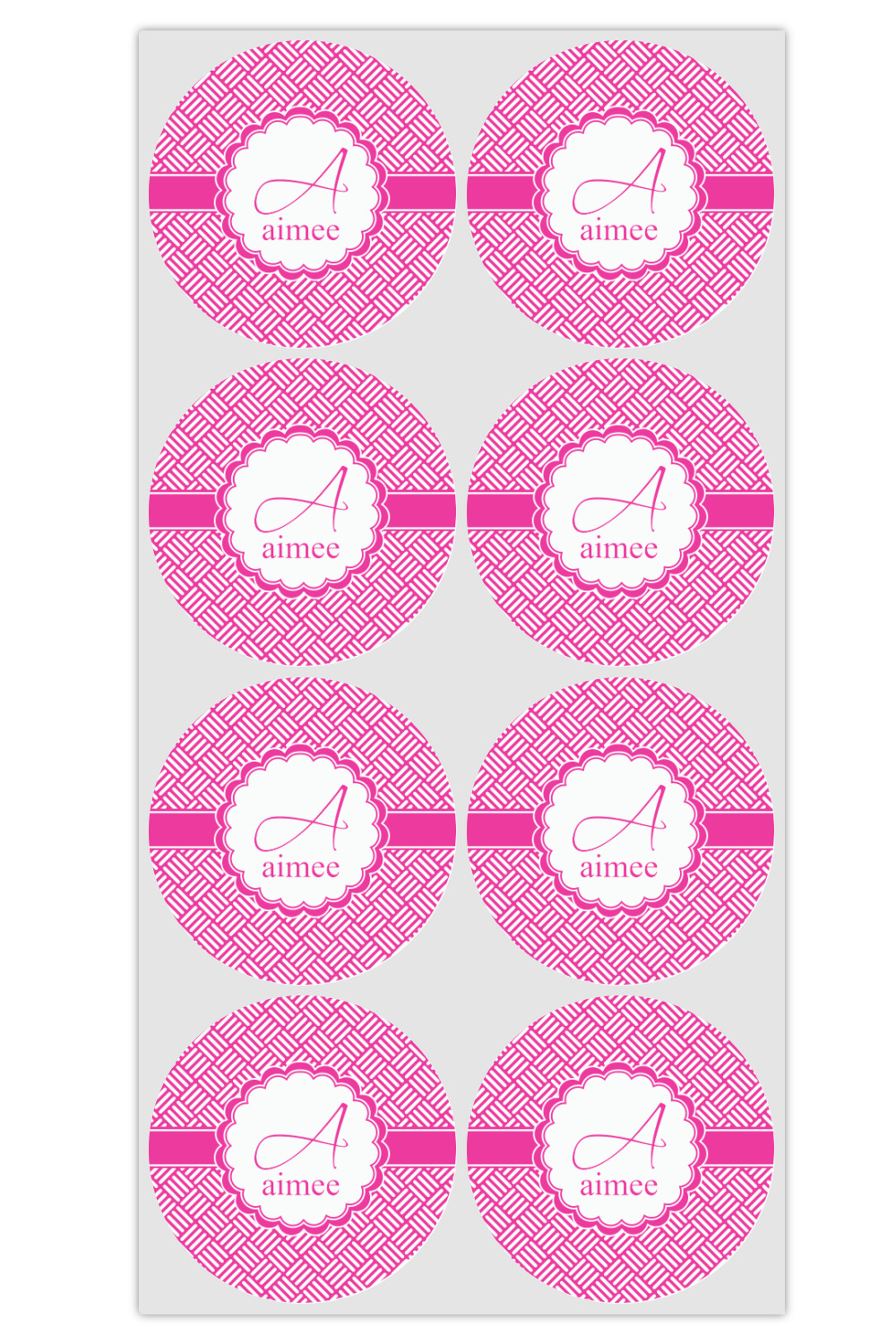 A quirky, scalloped circle label adorns the design. Add your name and initial for that special touch.