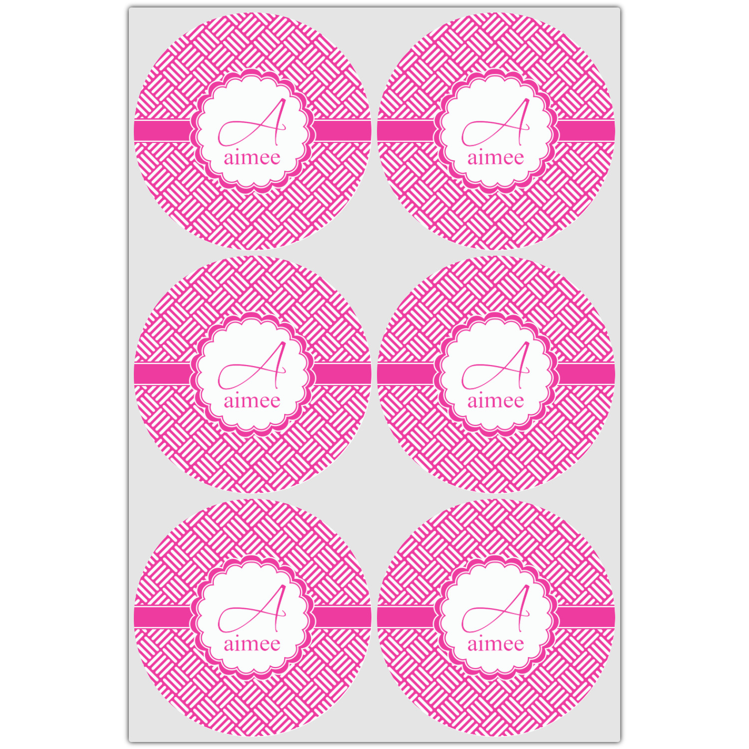 A quirky, scalloped circle label adorns the design. Add your name and initial for that special touch.