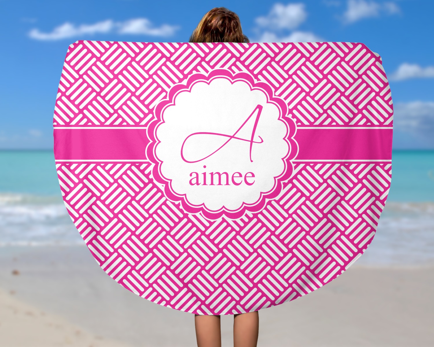 Think out of the box on your next beach, pool, or picnic day in style on your personalized round towel. This must have durable accessory is the perfect size for keeping you, and your possessions out of the sand. Sprawl out in the sun without getting your hands dirty, the unique round design allows for a full range of motion.