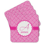 These coasters are perfectly sized for just about any drink being a 4"in square. The paper construction is a thick heavyweight 80 point pulpboard perfect for absorbing the condensation on the outside of your glass.