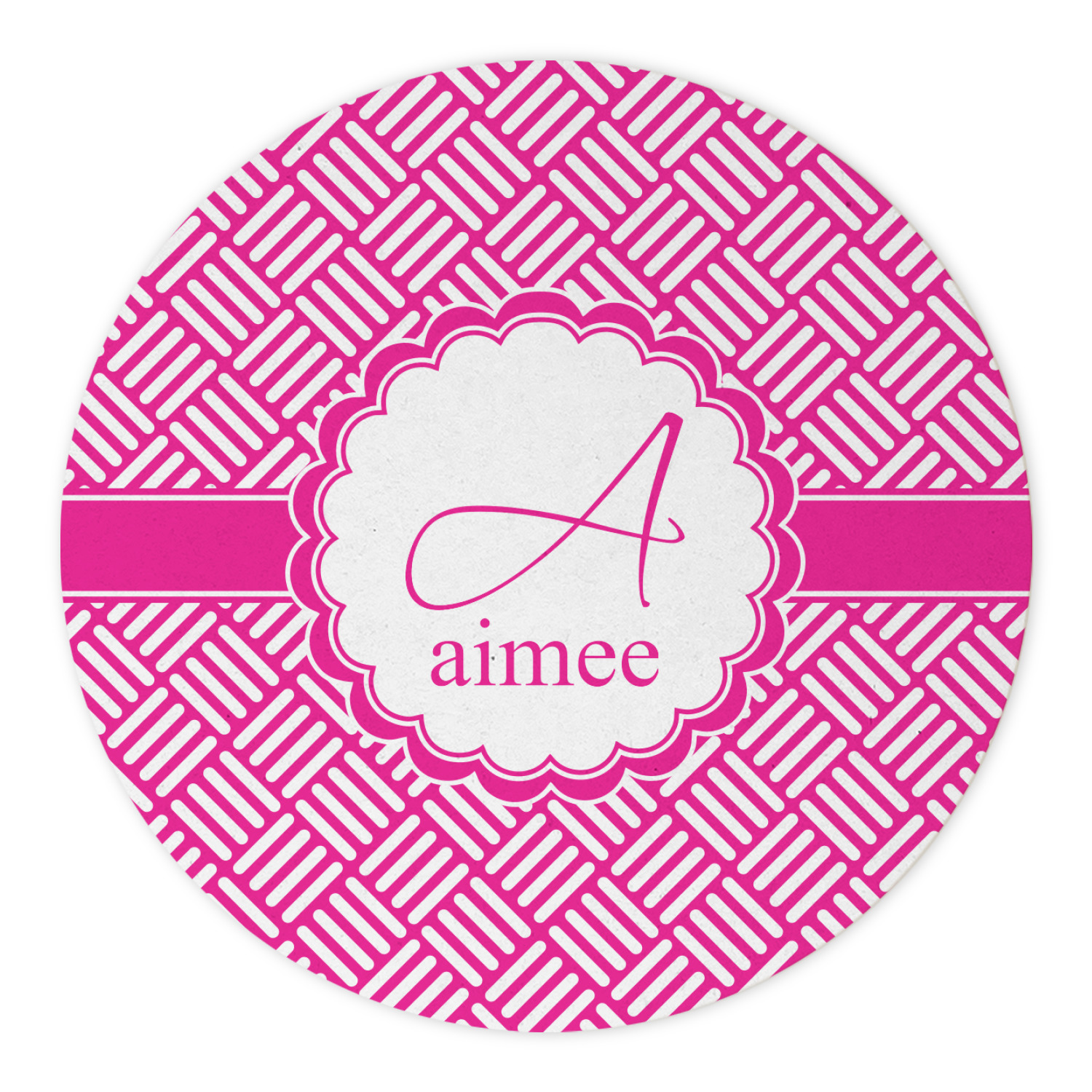 In honor of social media's latest fad, we have named this retro stripes design, "Hashtag." Featuring white stripes set at 90° angles on a hot pink background, this design celebrates both modernity and high fashion.
