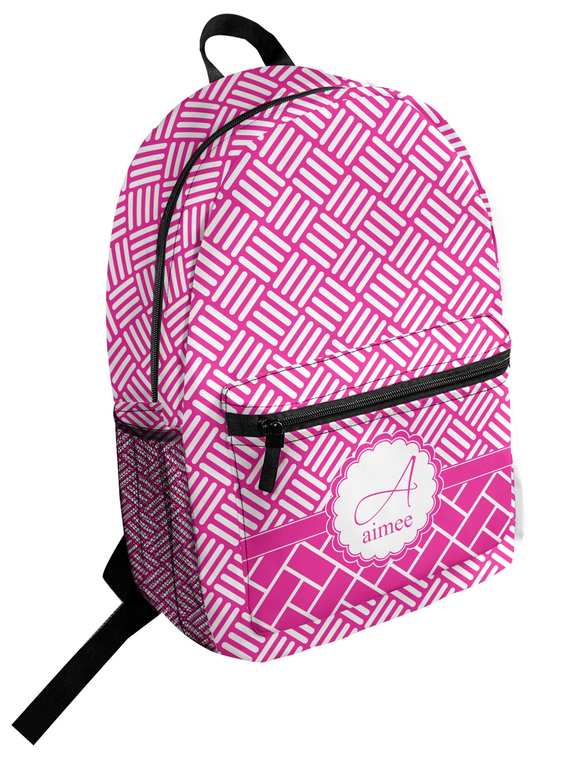 This backpack is the classic style with a zipper pocket on the front and a large zipper opening on top. There is also a small handle on top for hanging or carrying. The backpack straps are adjustable, so they should fit on most people. They are approximately 17"H x 12.5"W x 5"D, which is plenty of room for books, writing utensils, a laptop, and more! On the outside is a mesh pocket that is perfect for a waterbottle.