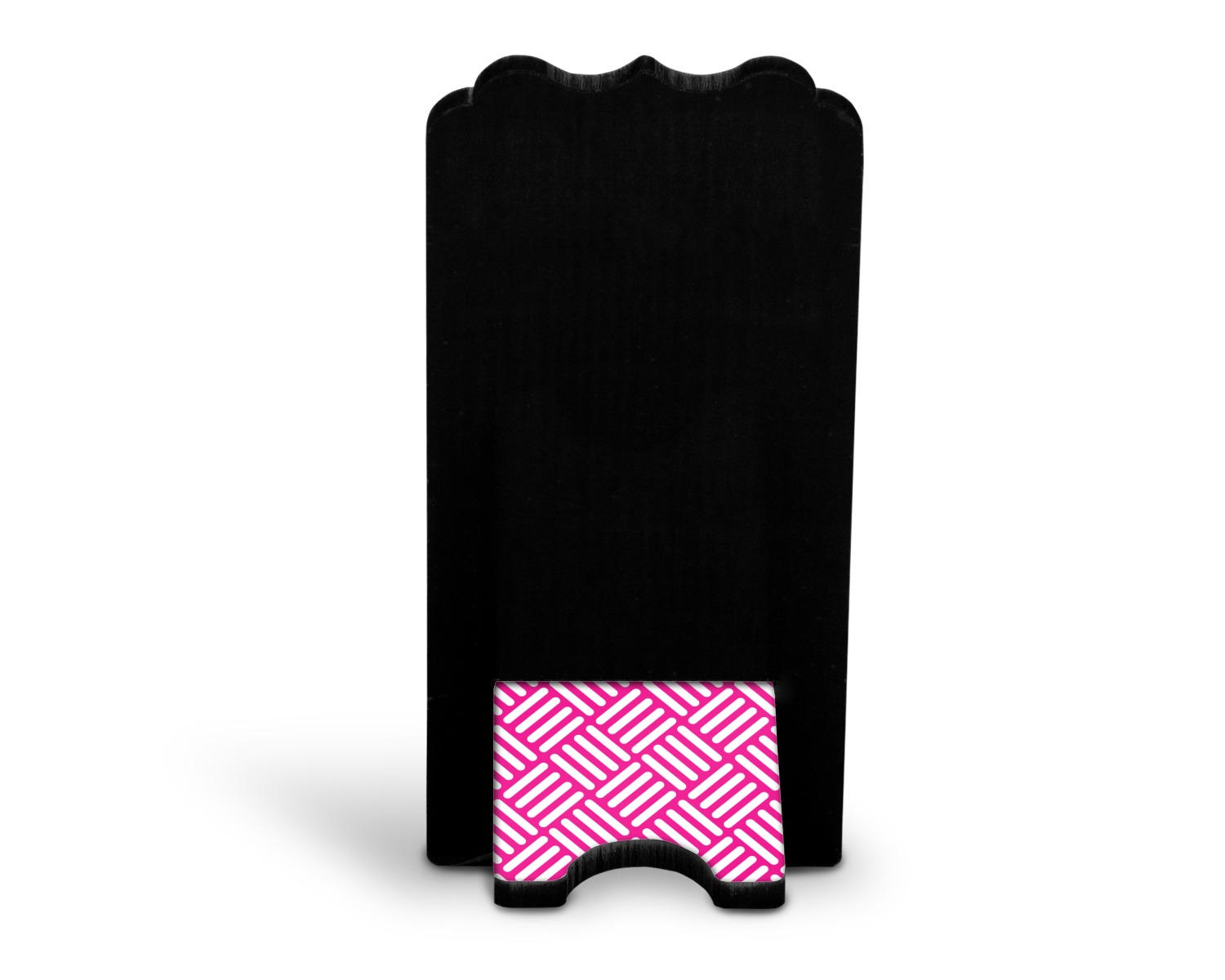 These cell phone holders are comprised of two hardboard pieces, that lock into and steady one another. The bottom part of the mobile phone stand is spacious enough to support both your phone and your charger, while it is not in use. We print your customization atop the face of this stand, while the remaining sides are a sophisticated, black color.