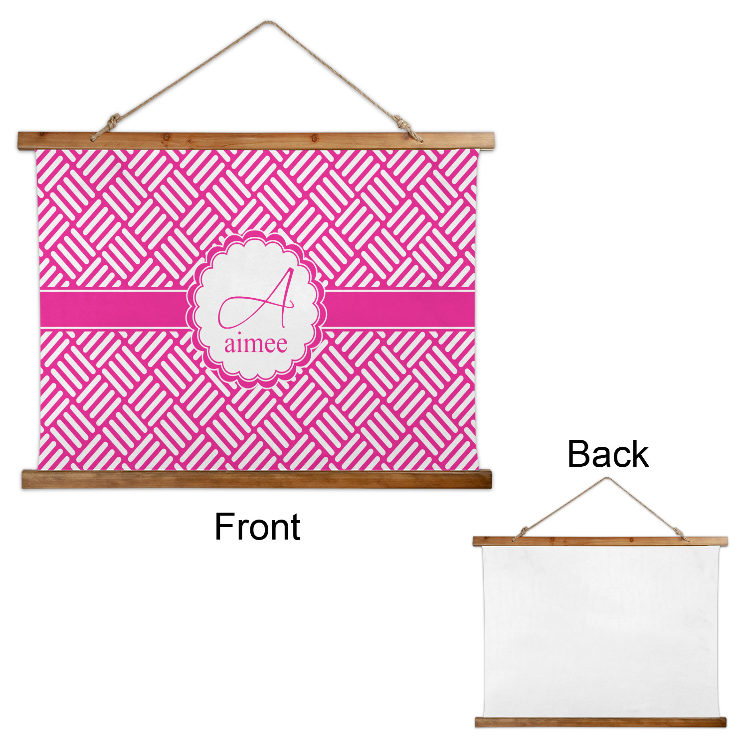 Made in two different orientations - portrait or landscape - both are 26" x 36". Your design is printed on a high quality polyester fabric with hemmed edges. The wood on the top and bottom of the tapestry is 1.25" tall and 0.25" thick and there are two pieces on top and bottom which sandwich the fabric.