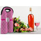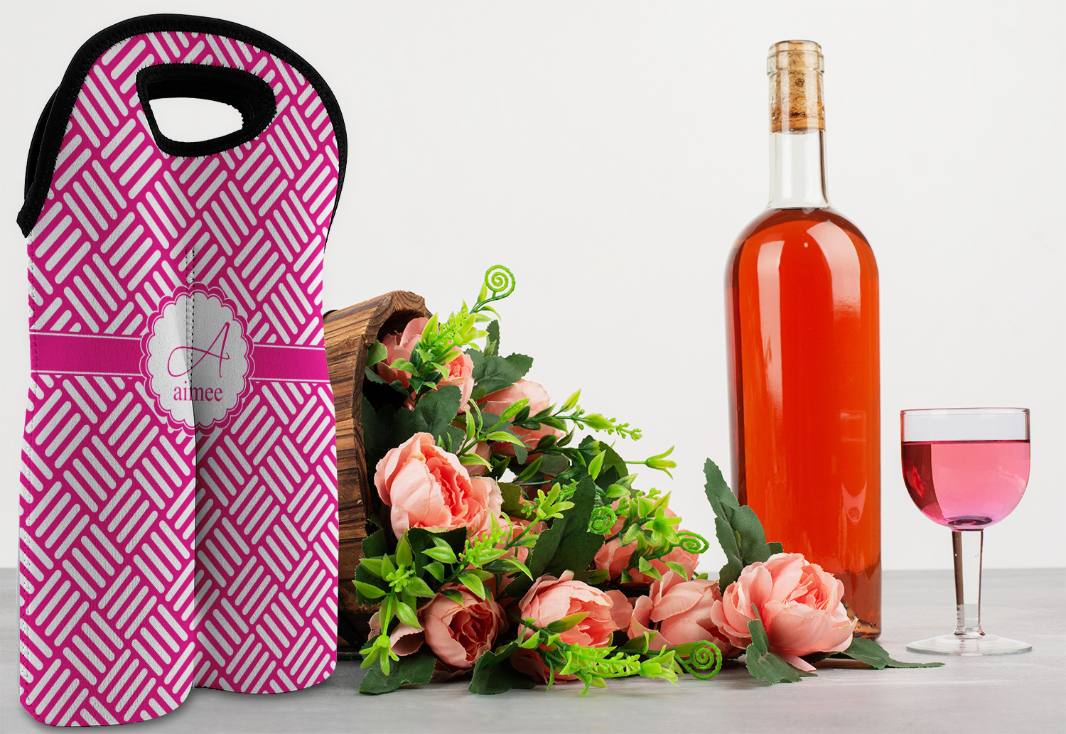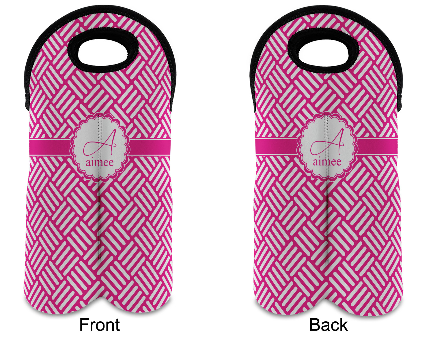 These tote bags are insulated to keep the bottles cold and have a stitched separation down the middle and double handles to keep the two bottles safe and secure during travels.
