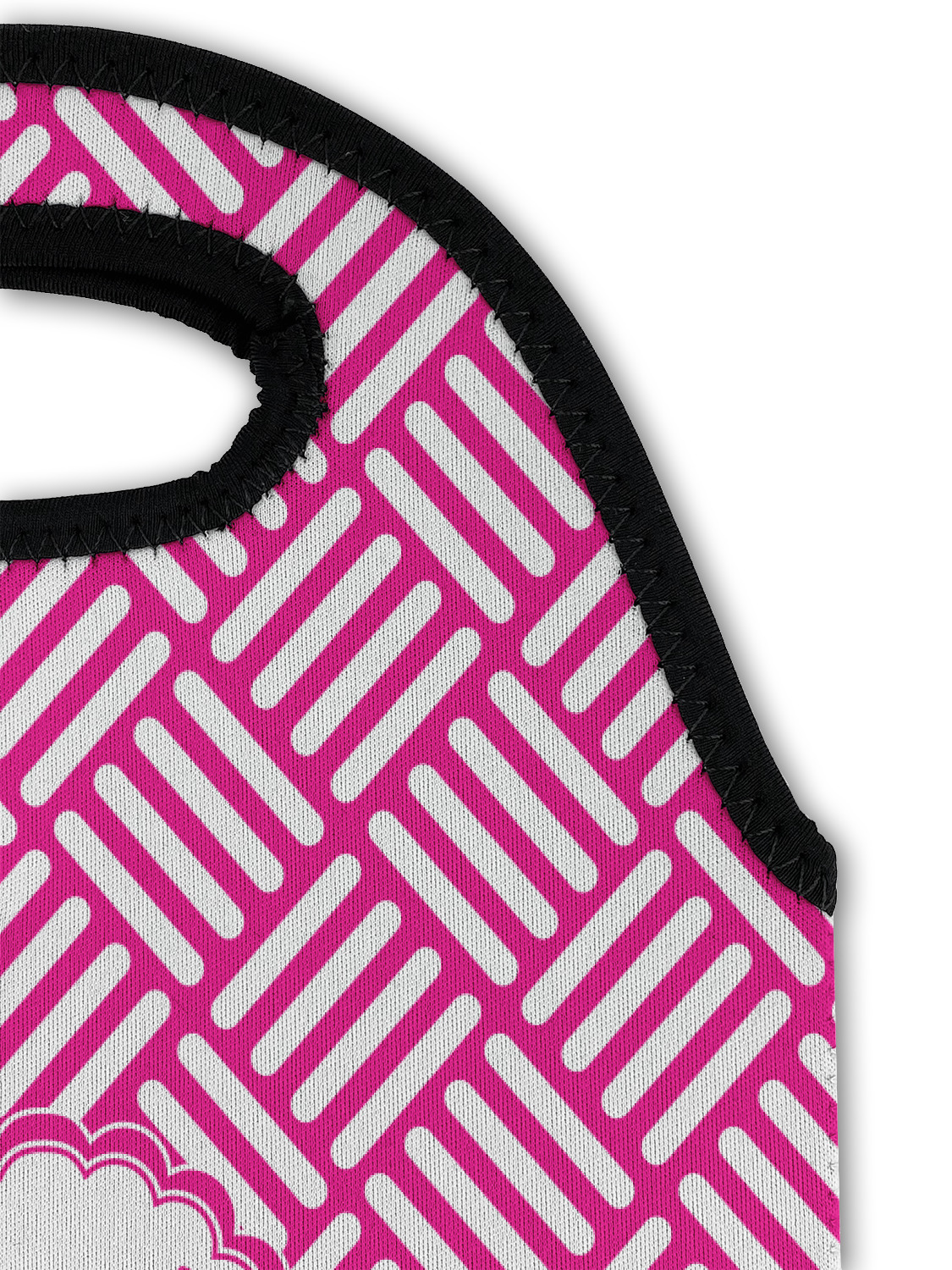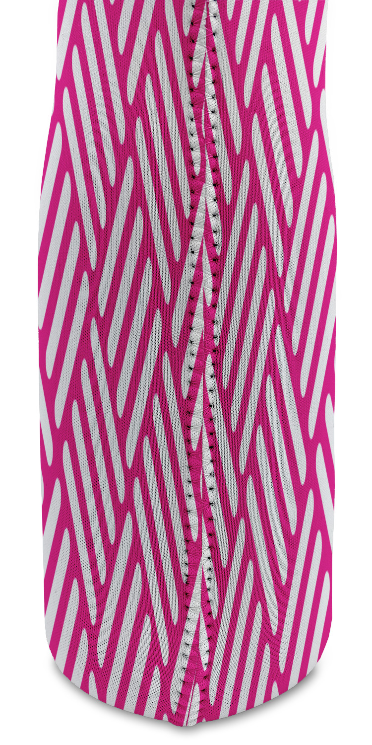 In honor of social media's latest fad, we have named this retro stripes design, "Hashtag." Featuring white stripes set at 90° angles on a hot pink background, this design celebrates both modernity and high fashion.