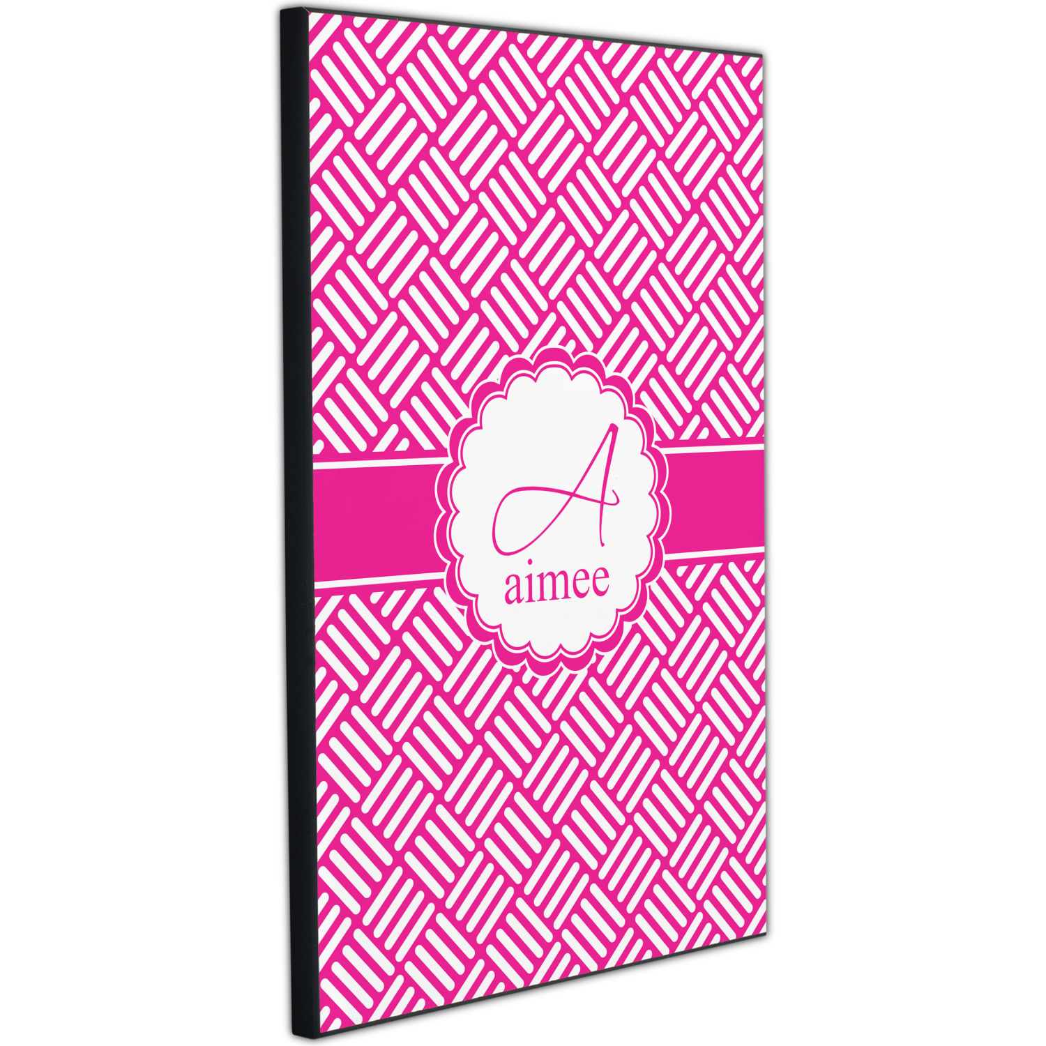 In honor of social media's latest fad, we have named this retro stripes design, "Hashtag." Featuring white stripes set at 90° angles on a hot pink background, this design celebrates both modernity and high fashion.
