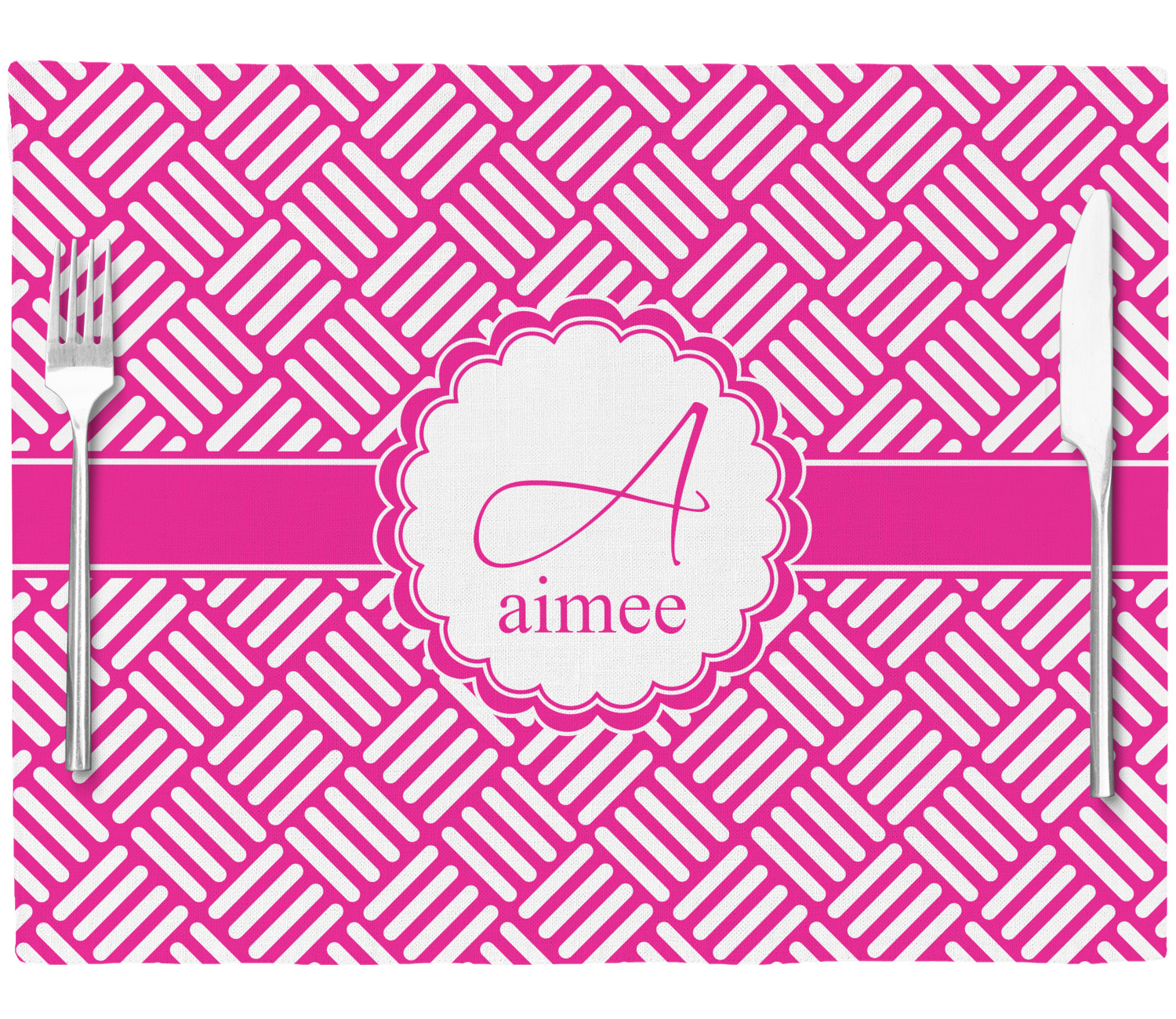 In honor of social media's latest fad, we have named this retro stripes design, "Hashtag." Featuring white stripes set at 90° angles on a hot pink background, this design celebrates both modernity and high fashion.