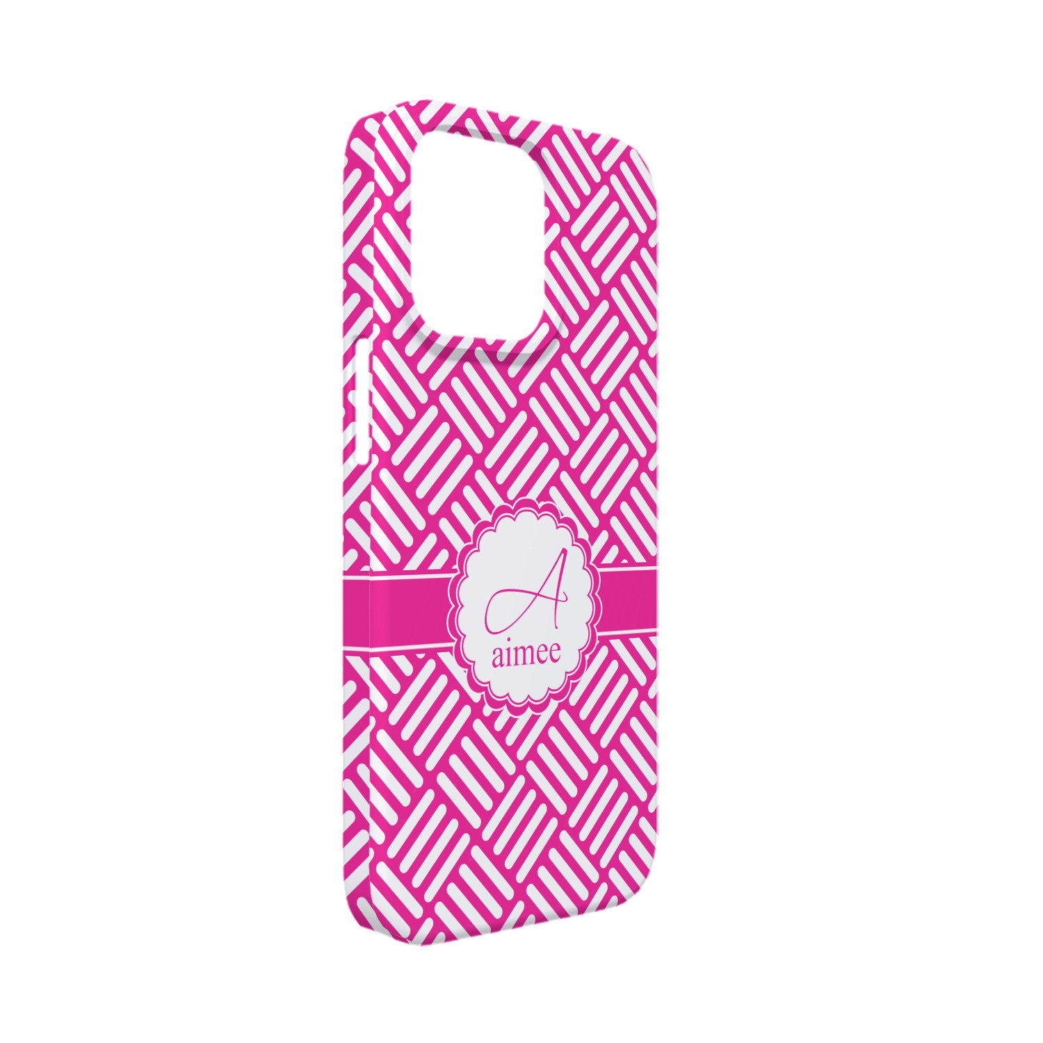 In honor of social media's latest fad, we have named this retro stripes design, "Hashtag." Featuring white stripes set at 90° angles on a hot pink background, this design celebrates both modernity and high fashion.