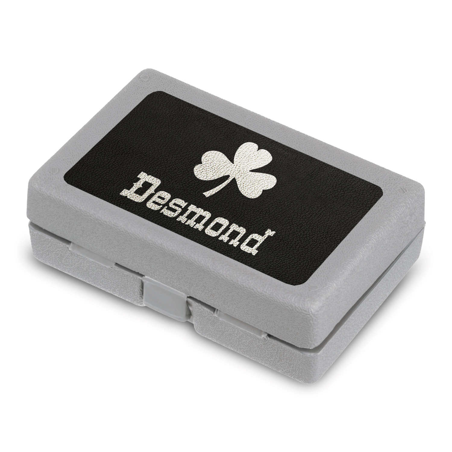 In a tri-fold hard shell case which measures 6" wide, 4" deep and 2" tall, this kit is the perfect size to keep in a desk, garage drawer, or anywhere else in the house. The snap closure keeps it securely closed to ensure the tools do not fall out. With the black faux leather on the outside engraved with your choice of personalization it will be easier to ensure it stays yours by being customized just for you!