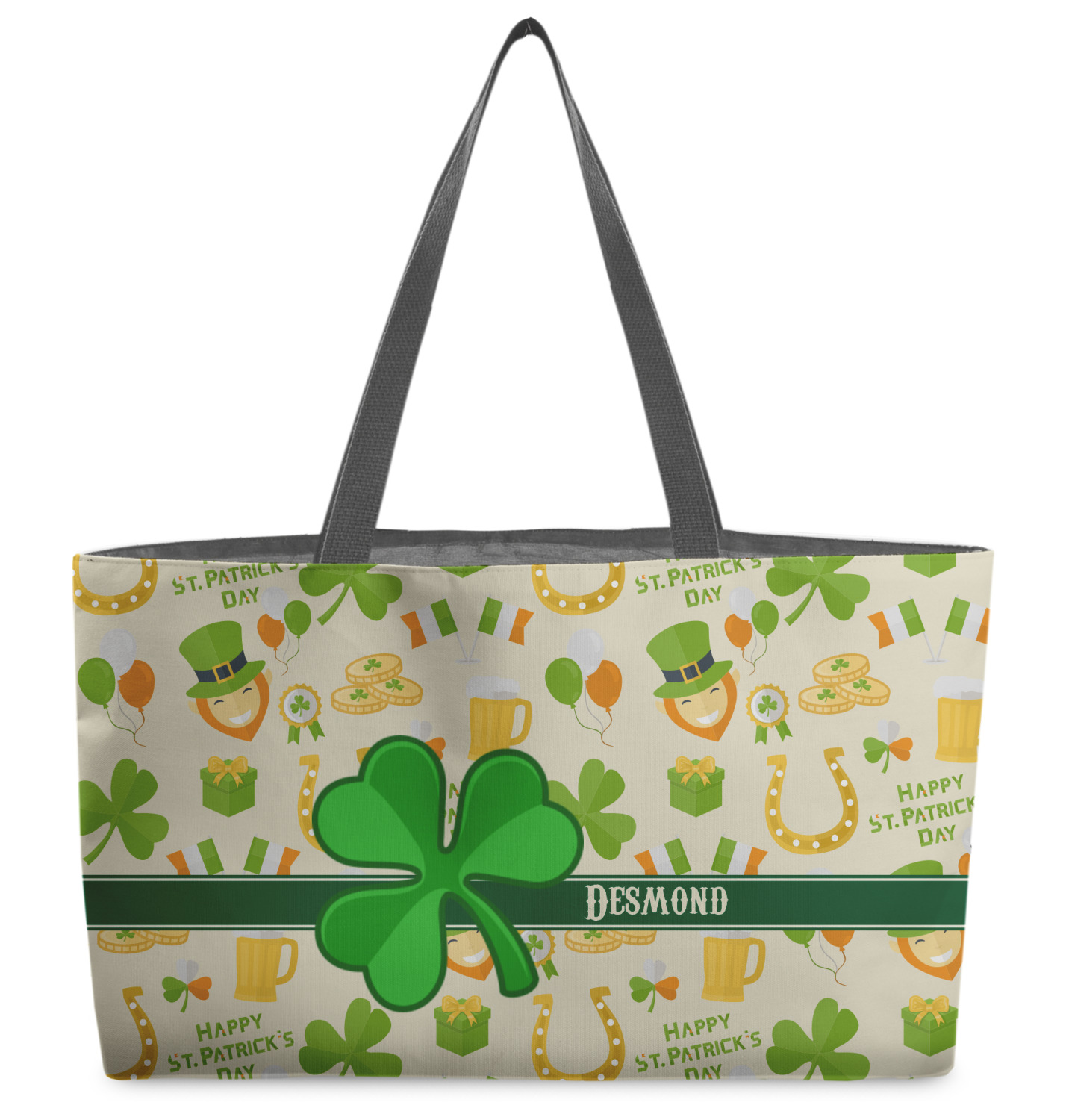 These beach totes are handmade here in the USA. Fabric is printed with your design. The tote is then sewn from the fabric pieces, lining and handles added.