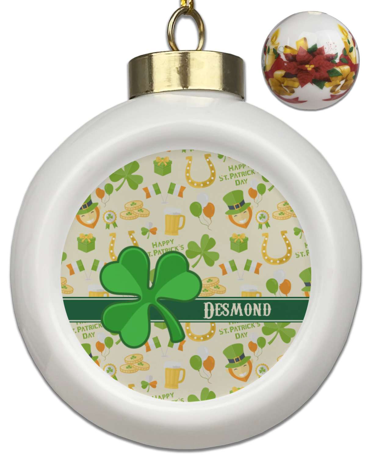 Our Christmas ornaments are a unique ceramic ball shape with a twist as it has a flat face to display your custom design! Select from one of our two design types - Christmas Tree or Poinsettia Garland - to adorn the curved back of your personal design. Each ornament measures 3H x 2.5W x 2D accompanied with a gold string accent for finishing touches to hang on your beautiful Christmas tree!