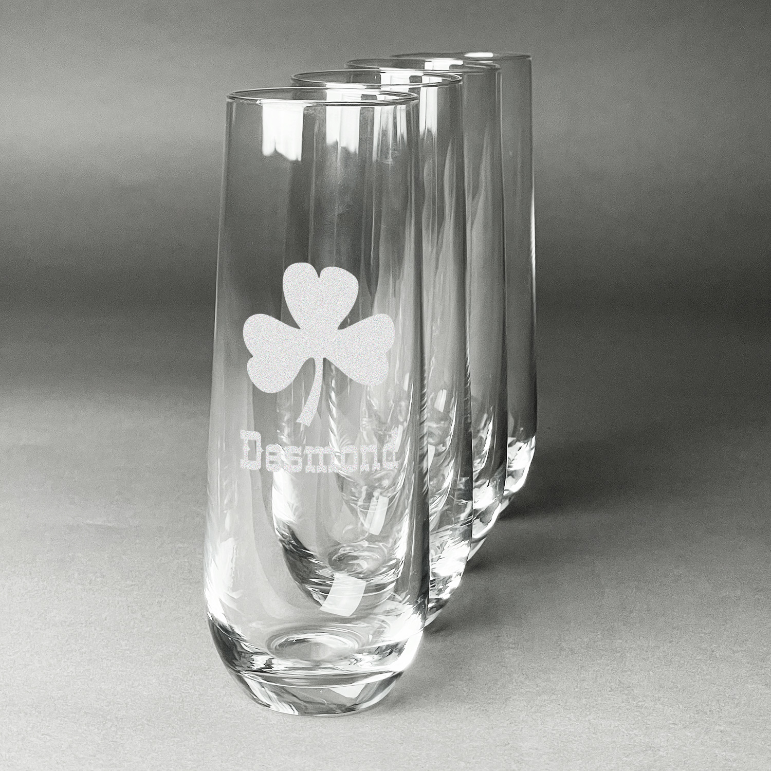 Design your custom stemless champagne flutes and we will then laser engrave your unique design on them for you. Whether they are a special gift for a bride and groom, for your New Years Eve party, or a bachelorette party you are sure to be able to add a custom personalized touch to make them perfect for the occasion.