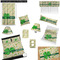 This lucky design has a lovely light cream background. There is a festive assortment of colors in all the graphics that make up the background including orange, green, and yellow. You'll find leprechauns, gold, beer, and Irish pride all in this one design! A large lucky clover is featured largely in the foreground of the design with a ribbon sitting behind it where you put your personalization.