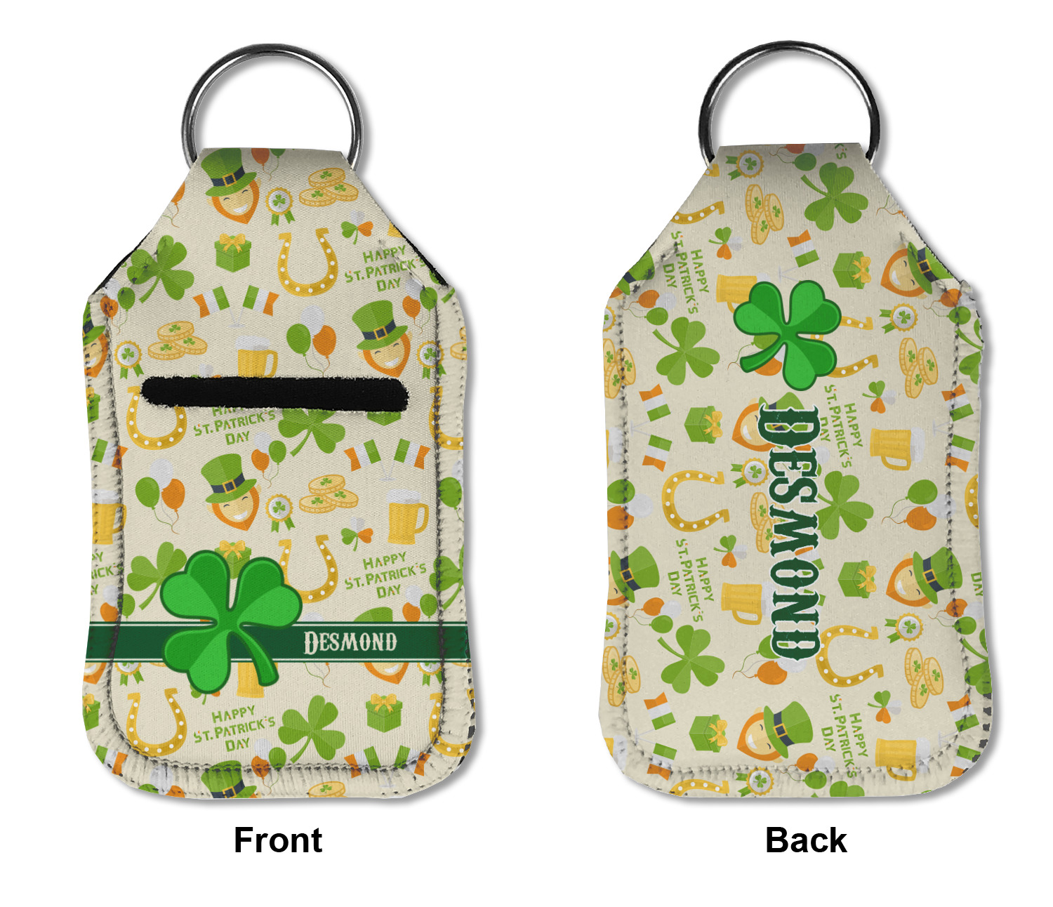 Each hand sanitizer holder comes with its own empty travel-sized, refillable hand sanitizer sure to fit snug in your customized sanitizer case! Our hand sanitizer cases are a durable, yet soft neoprene material sure to last any daily activities or travel agenda. Customize and personalize a hand sanitizer bottle holder with one of our two sizes - small (4.25" x 2.25") or large (5.5" x 2.5"). Each travel sanitizer holder comes with a keyring for attachment on bags, keys, or more!