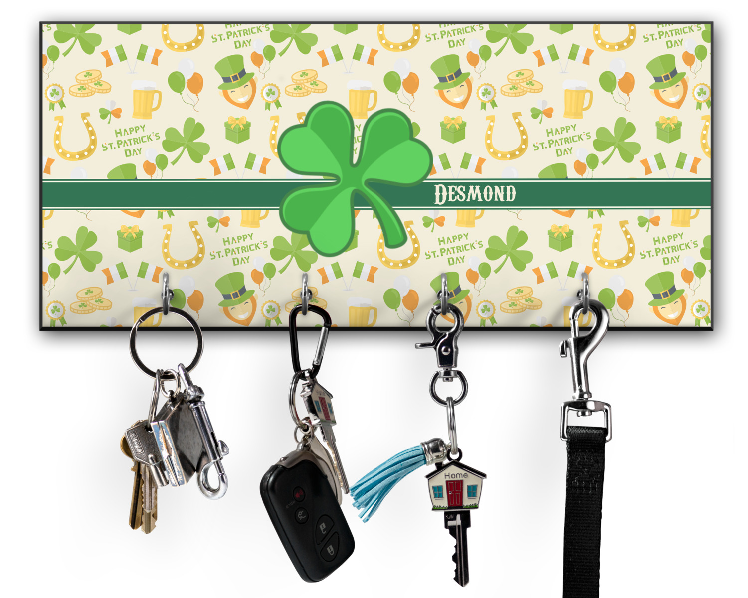 This 11" x 5" key hanger is made of sturdy wood and has four metal hooks lining the bottom. This is the perfect size for a family with several drivers. Not only can you hang keys on it though, but pet leashes and other small items. The board is black on the sides and back and is printed with the design of your choice on the front.