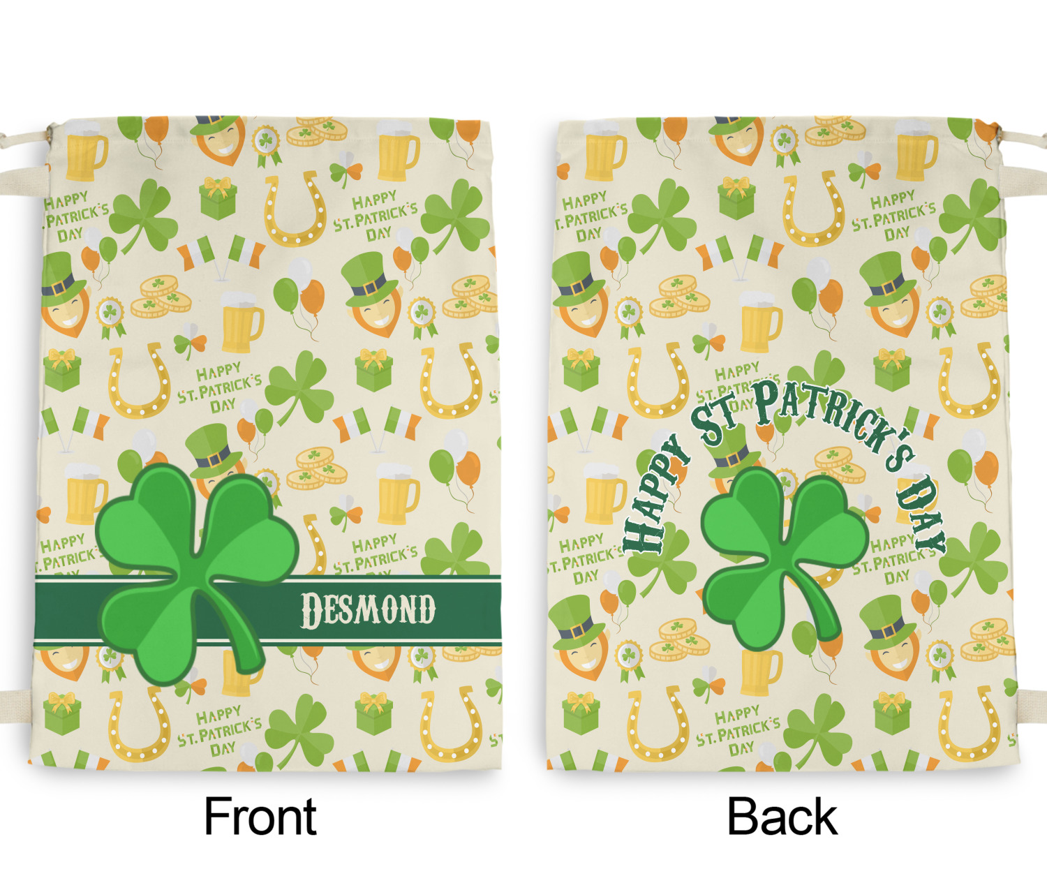 Carry your laundry in style with these customized laundry bags. Available in two sizes, featuring a natural colored woven strap and a cinch cord, these bags hold a lot of clothes or anything else you want to fit in them.