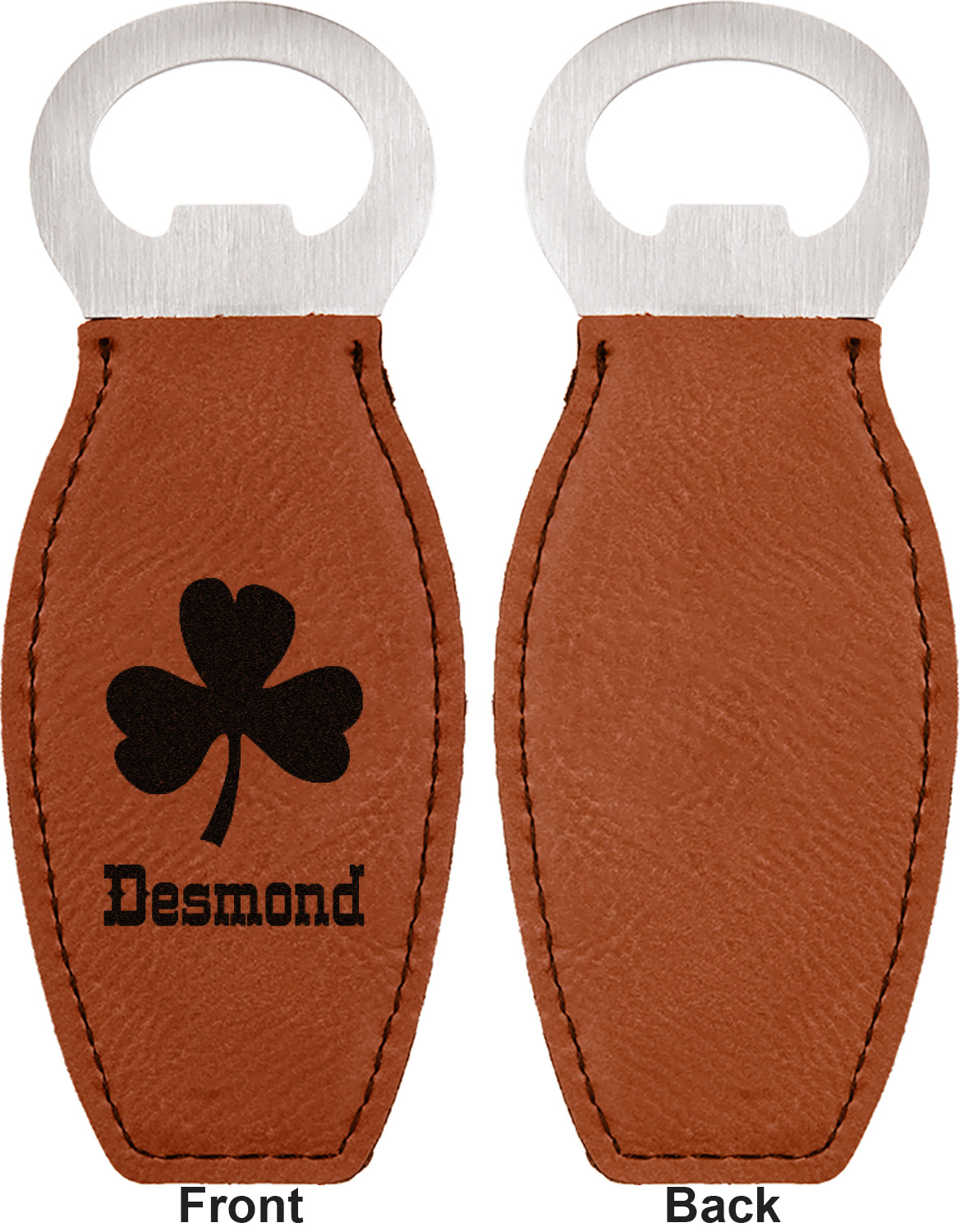 Built from stainless steel, these custom bottle openers are wrapped in a cognac-colored leatherette. Sharp, black stitching lines the edges for extra durability and a finished touch. Your personalization is laser-engraved onto the surface of this leatherette, leaving behind a crisp, black coloration. At 4.6 by 1.8 inches, this beer bottle opener gives you much of leverage when trying to open a stubborn bottle. On the opposite end of the opener, you'll find a magnet that you can use to display your new, unique bottle opener!