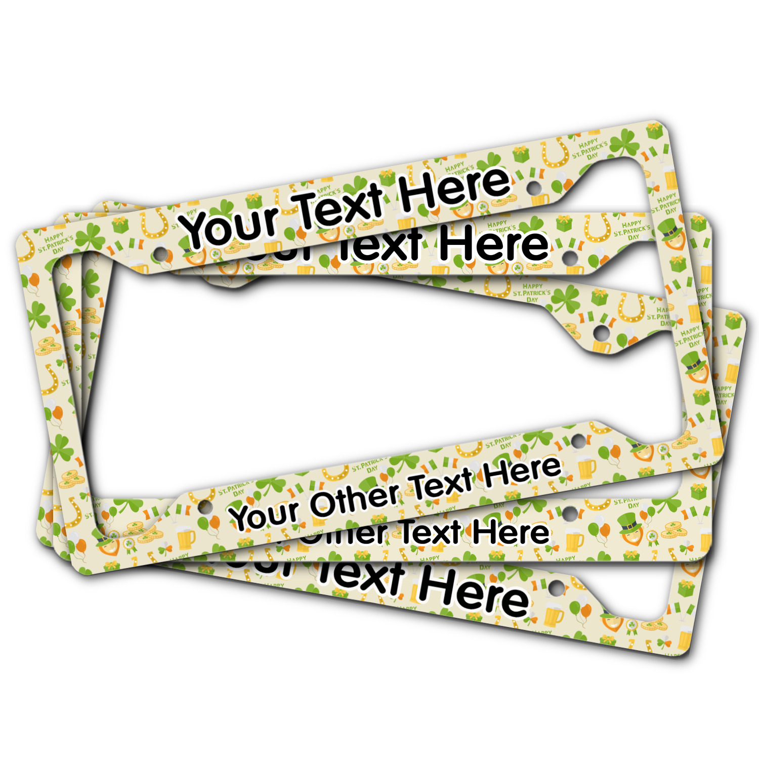 Each customizable license plate frame is made from a fine, yet sturdy aluminum material that measures approximately 6.5 x 12.15 inches, accommodating most standard license plates. The thickness allows the license plate frame to adhere completely to your license plate for a seamless look. We carry 3 styles of license plate frames to customize - Style A has texts on top and bottom, Style B offers texts on top and bottom as well as a full fill bottom border, and Style C offers text at the bottom only. The personalized license plate frame comes with four mounting holes for easy installation! We print each custom design across the frame with a glossy finish.