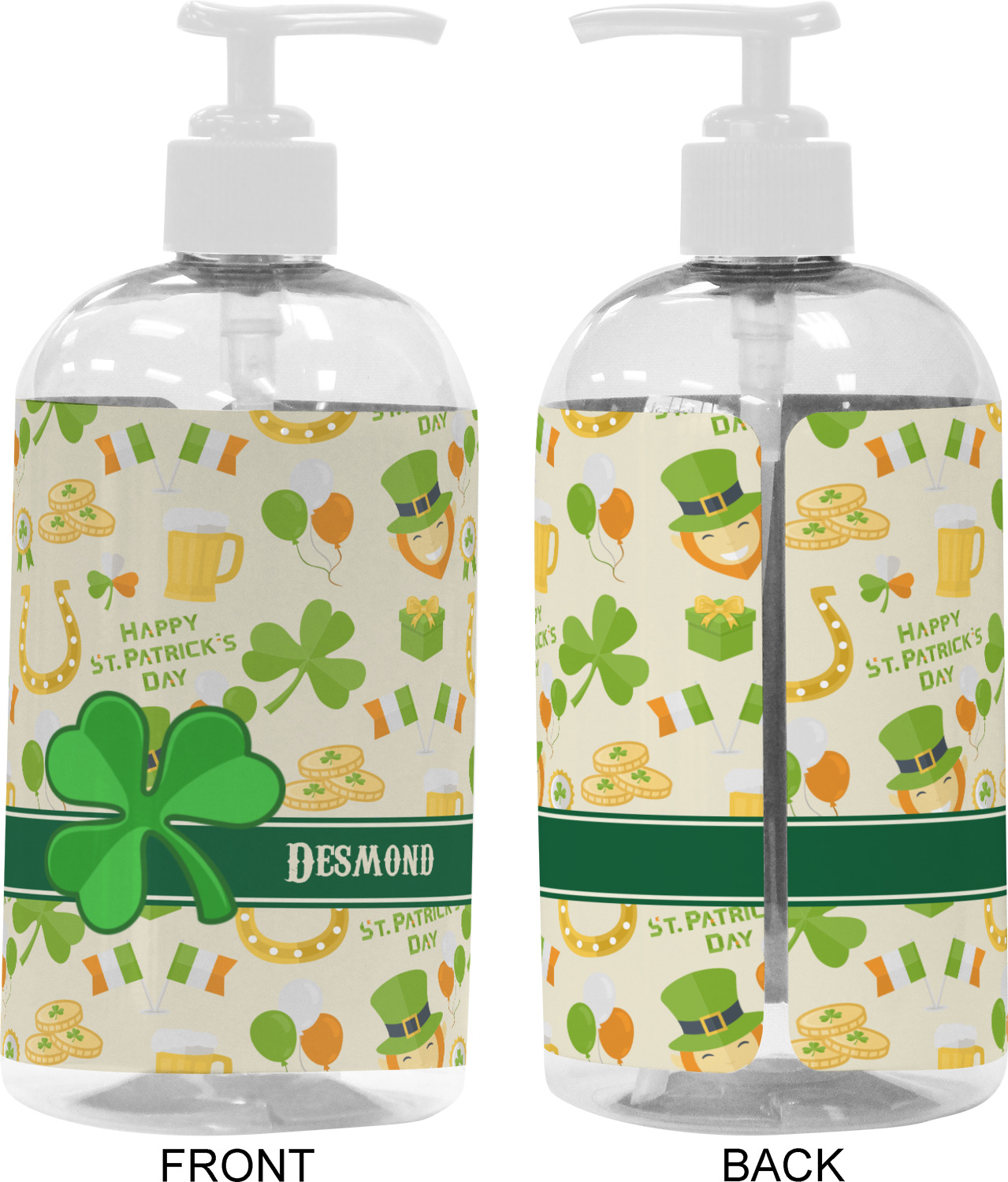 We adhere and wrap your custom printed design around the clear plastic bottle; there is a slight gap at the back for you to see the liquid level. Your design is printed on high gloss vinyl with eco-solvent inks and completely waterproof and will not fade or deteriorate over time. The vinyl is machine cut and adhered by hand to the clear plastic bottle.