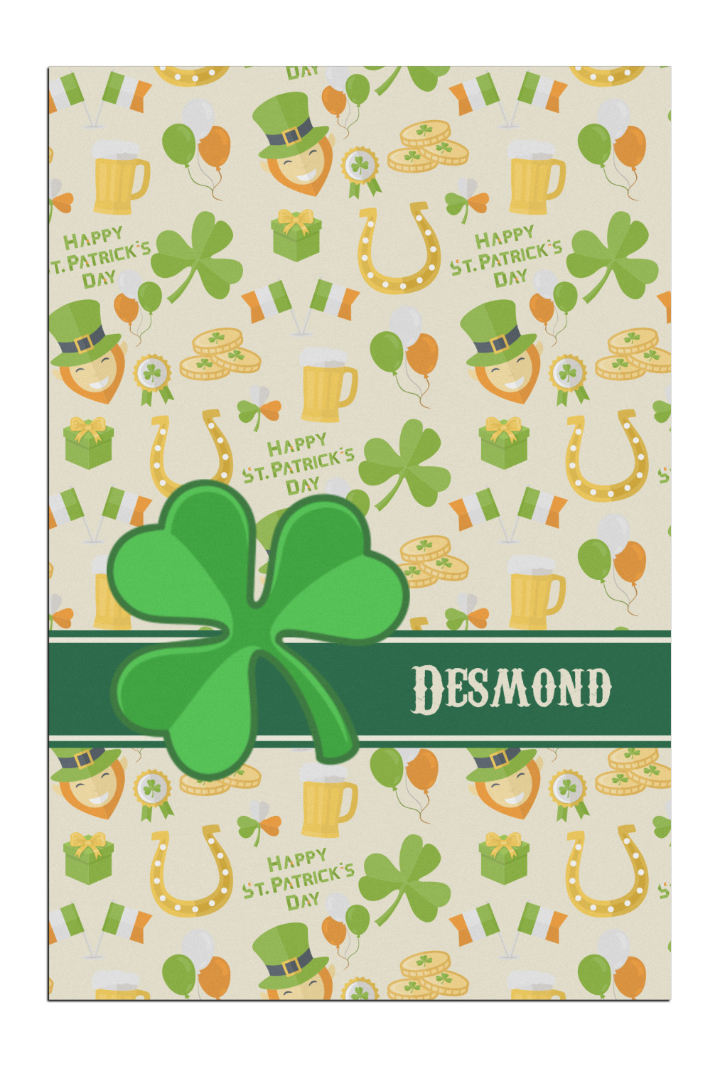 This lucky design has a lovely light cream background. There is a festive assortment of colors in all the graphics that make up the background including orange, green, and yellow. You'll find leprechauns, gold, beer, and Irish pride all in this one design! A large lucky clover is featured largely in the foreground of the design with a ribbon sitting behind it where you put your personalization.