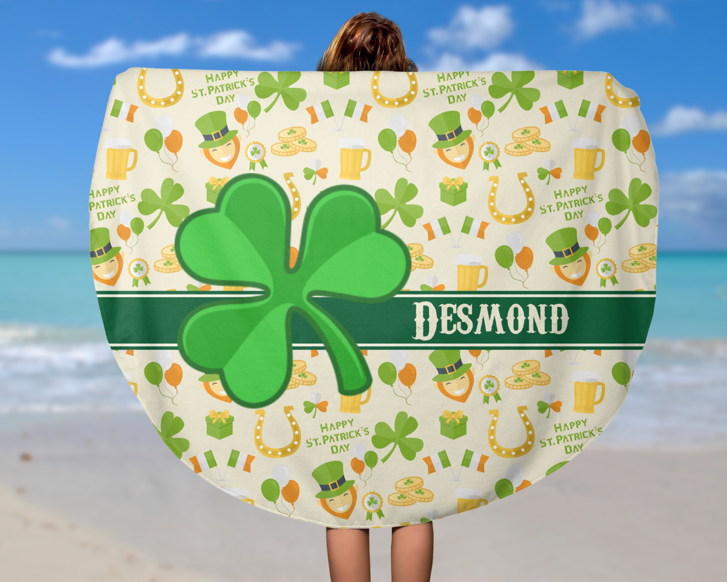 Think out of the box on your next beach, pool, or picnic day in style on your personalized round towel. This must have durable accessory is the perfect size for keeping you, and your possessions out of the sand. Sprawl out in the sun without getting your hands dirty, the unique round design allows for a full range of motion.