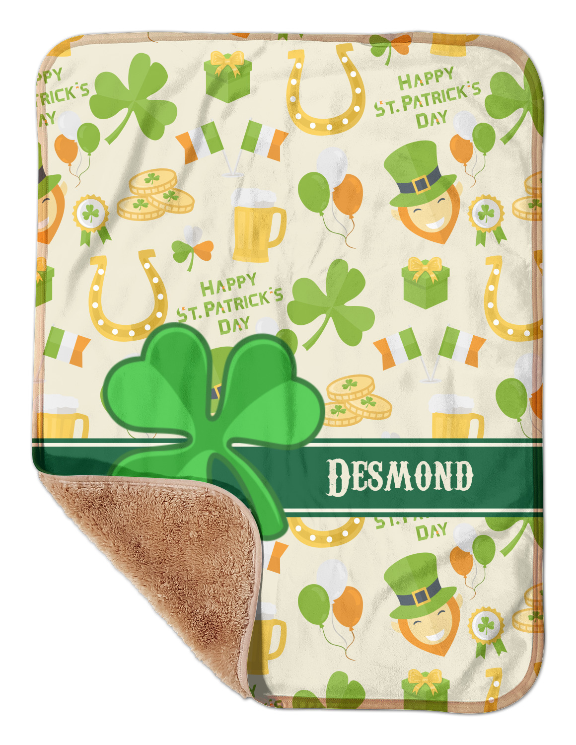 These toddler blankets are made of two different materials; the front side is made of a velvety, minky-like material that displays your customization and is perfect for a baby's delicate skin. The underside is crafted from a fluffy, sherpa fleece, and bears a classy, tan color. The dual texture gives your baby added comfort, as both sides are incredibly soft and plush. The corners of this blanket are rounded, and the ribbing of the blanket is a tan color, which complements the sandy color of the sherpa fleece. At approximately 30 by 40 inches, this custom baby blanket is the perfect size for babies and toddlers.