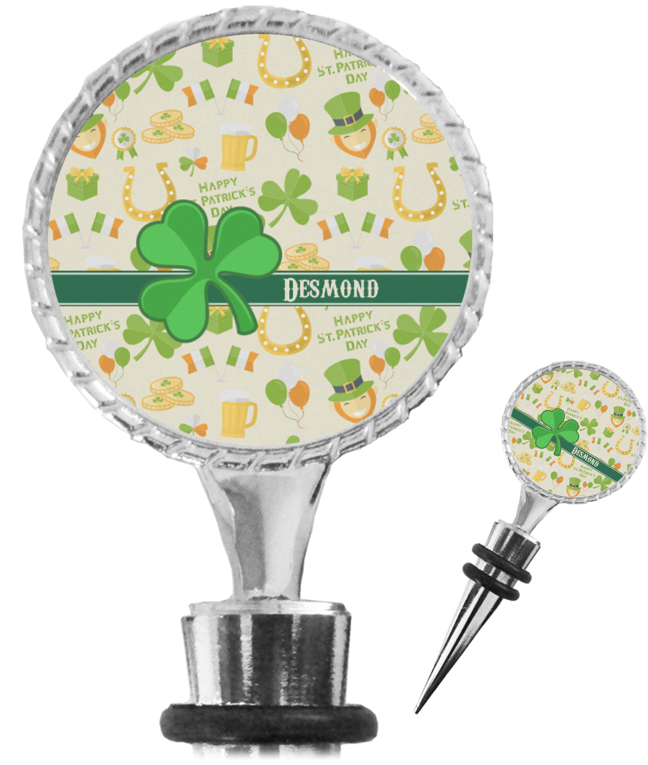 The top part of your bottle stopper is comprised of a zinc ring that displays your customization(s) in its middle, on both sides. The ring is heavy duty, with a bright chrome finish. The body of the wine stoppers have two silicone rings to provide an airtight seal. These wine bottle stoppers measure at 1.625" L x 0.8125" W x 4.625" H; your custom wine stopper is meant to fit into most standard-sized wine bottles.