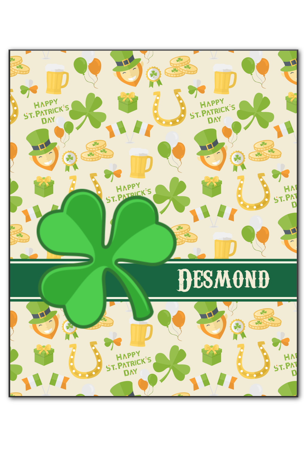 This lucky design has a lovely light cream background. There is a festive assortment of colors in all the graphics that make up the background including orange, green, and yellow. You'll find leprechauns, gold, beer, and Irish pride all in this one design! A large lucky clover is featured largely in the foreground of the design with a ribbon sitting behind it where you put your personalization.
