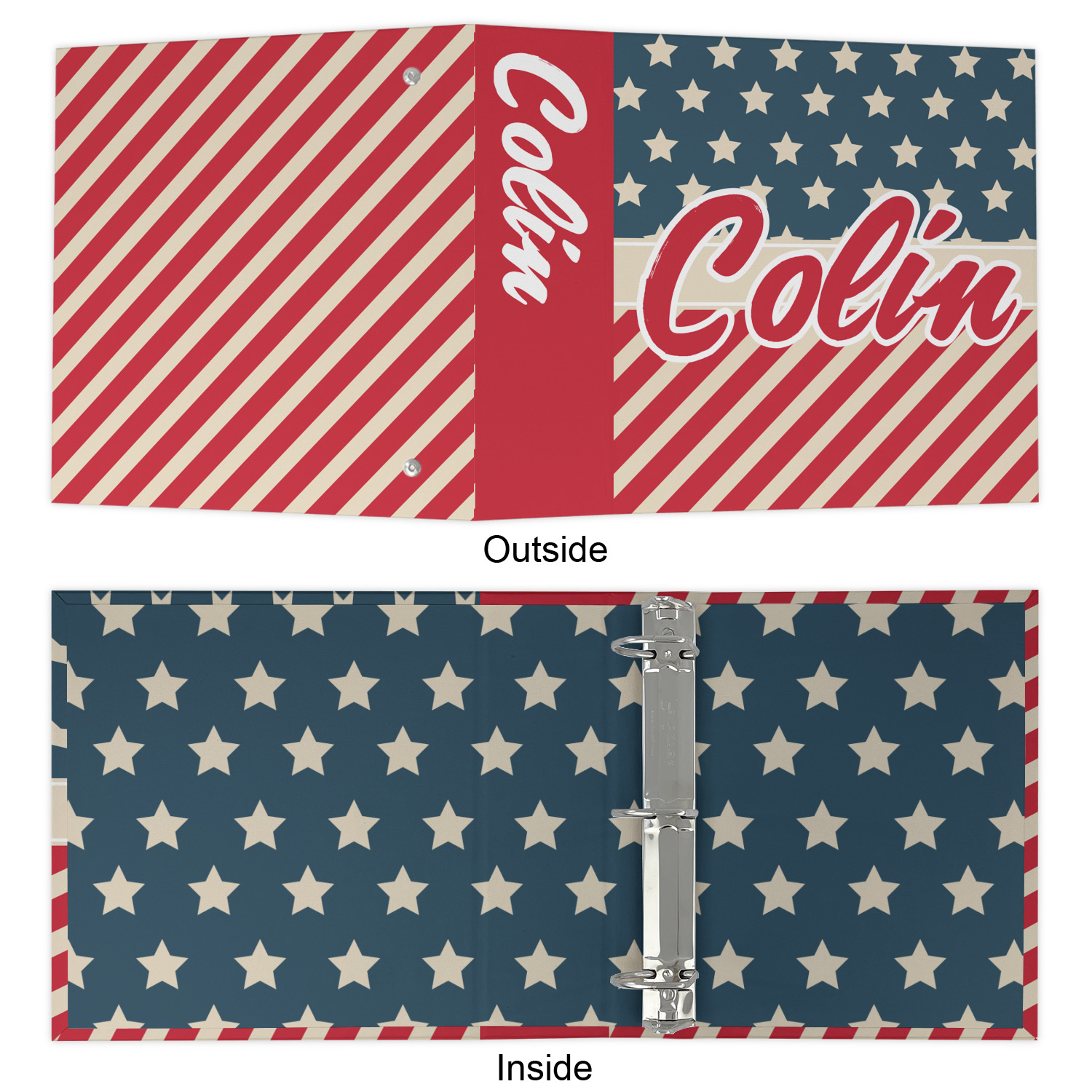 The outside is printed in 3 sections - front cover, spine and back cover - while the inside is printed in a full single print of your choice. The inside boasts a high quality nickel plated binder mechanism with a trigger opening function and is secured to the cardboard binder with posts and screws.
