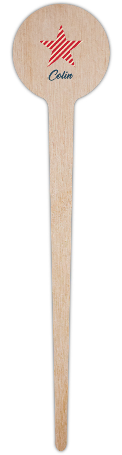This design is a dark blue, bright red, and cream. The top half is white stars and a dark blue background, while the bottom half is a red and cream diagonal striped background. The backgrounds are divided by a cream ribbon and frame with your personalization in the middle. Have fun decorating with this classic patriotic design.