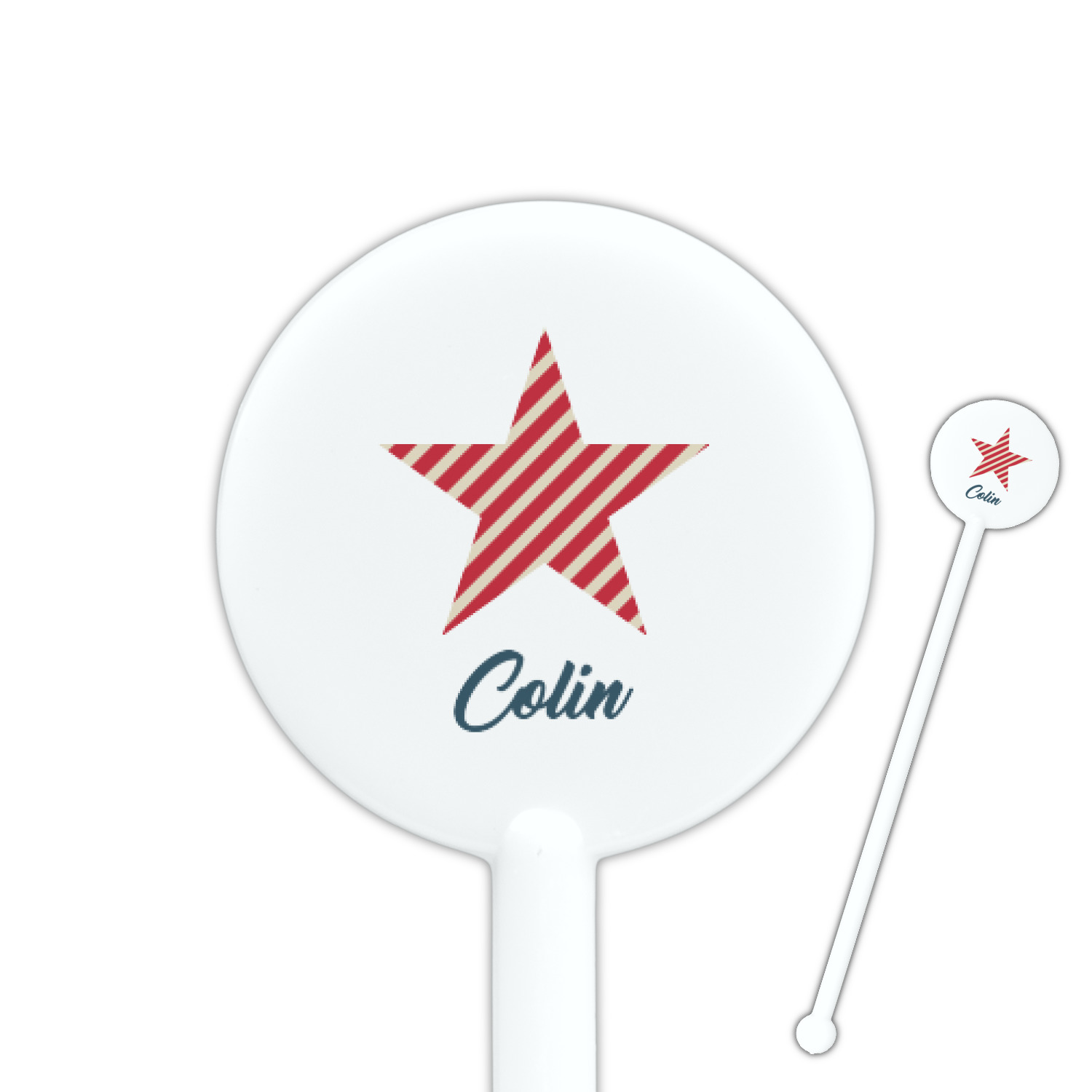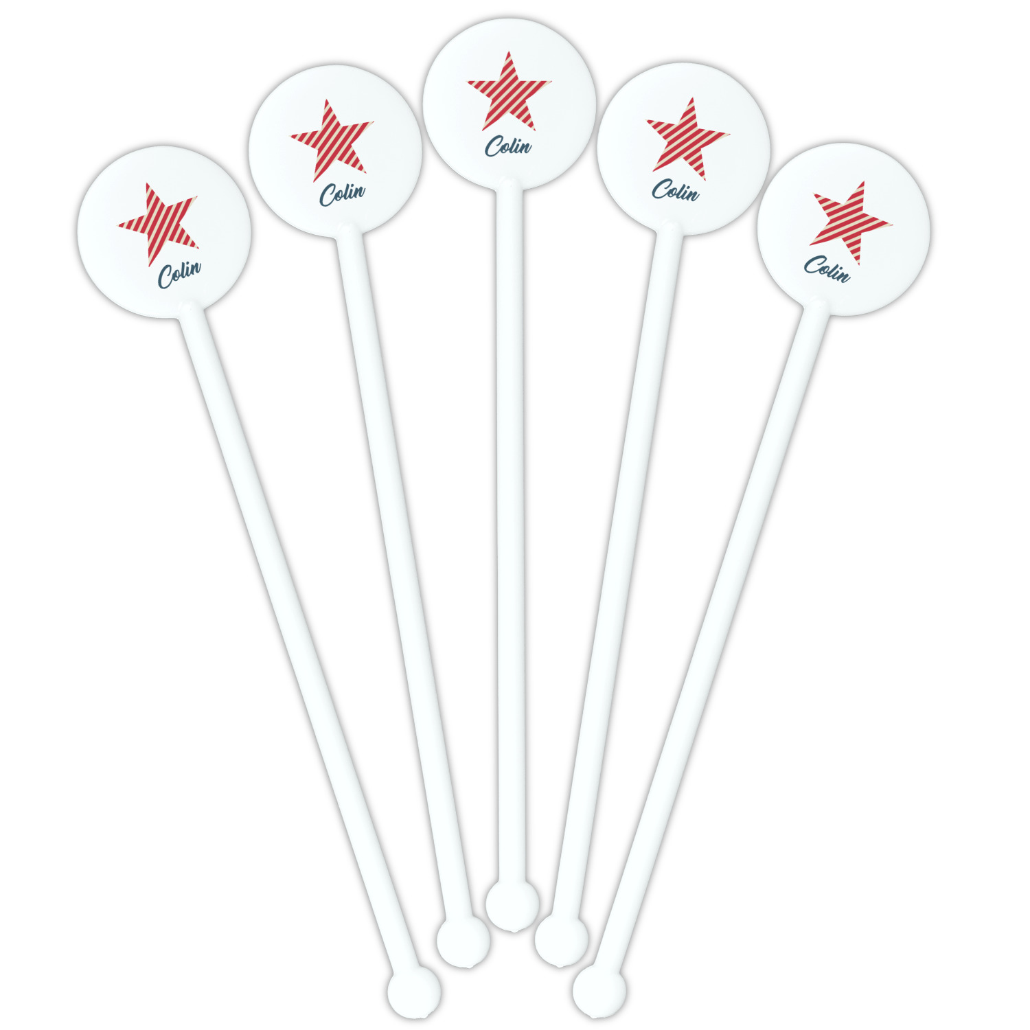 America / USA Designs for 5.5" Round Plastic Stir Sticks - White - Single-Sided