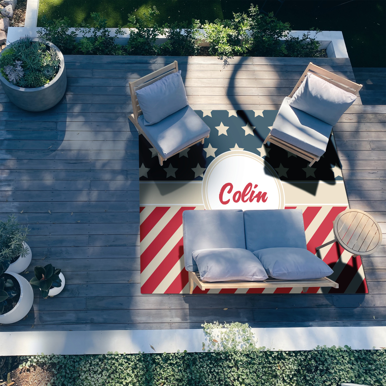 Patio rugs add color and warmth to your home's outdoor space, so create a custom patio rug to suit your personal style and match it to the colors of your outdoor décor. Have it personalized with a monogram, initial, name or a combination of these - the choice is yours.