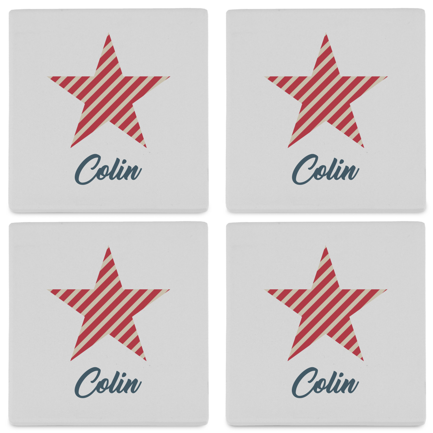 By default, the 4 coasters all have the same design on them, however, you can change that and have a different design on each one of the 4 coasters. The choice is yours.