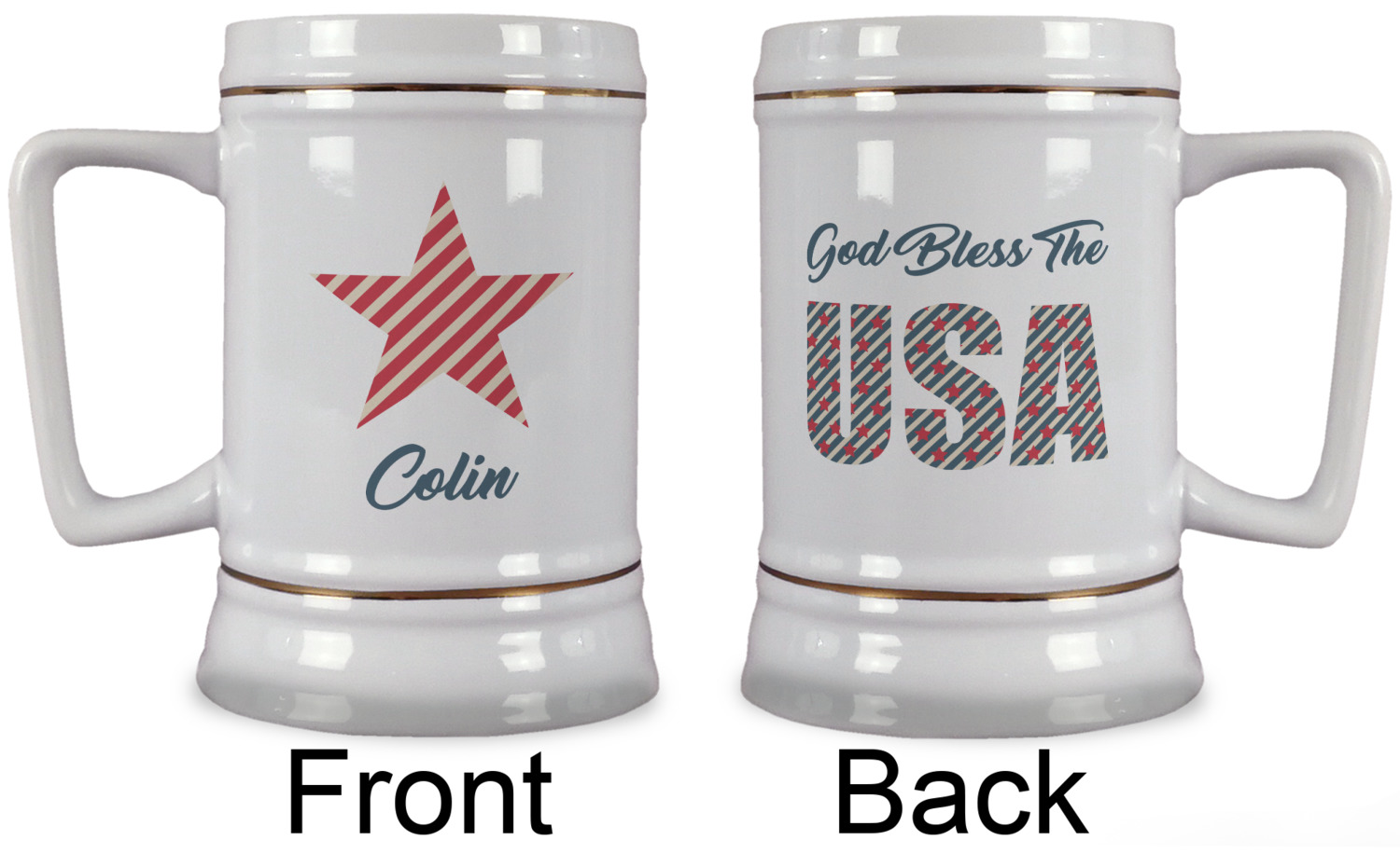 Your favorite beer will taste even better when you drink it from your customized beer stein! These beautifully crafted ceramic beer steins also make great personalized gifts, especially for beer connoisseurs. They also make great gifts for birthdays, holidays, bachelor parties, anniversaries, father's day, or you can just purchase one for yourself!