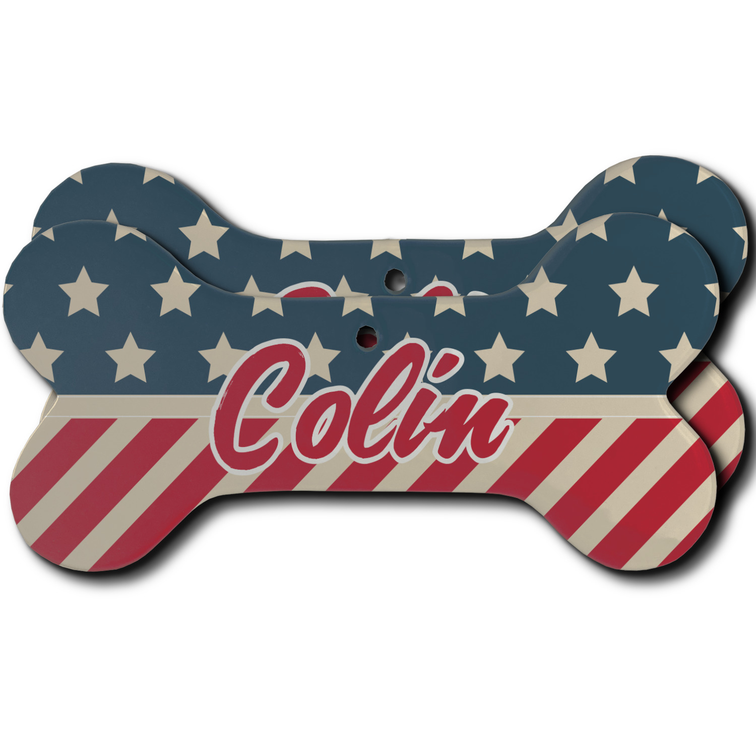 Our dog Christmas ornaments are a ceramic material with a bone-shaped structure hung horizontally. We offer two printing styles to personalize your furry friend's ornament! Choose a one-sided printing, perfect for wall decor, memorial accessory, or doghouse nameplate! Create a double-sided ornament perfect for adorning the Christmas tree. Each dog bone ornament is approximately 4.75" x 2.25" and is printed here in the USA.