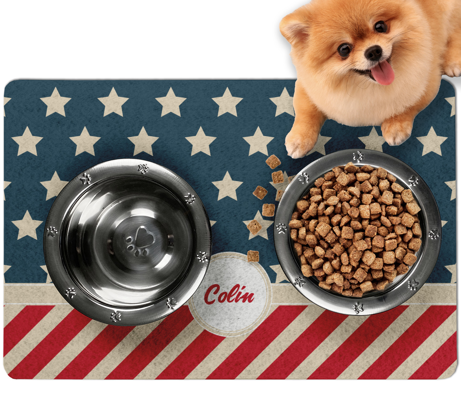 Frustrated with the mess your pets make during mealtime? Personalize a multi-functional dog food mat that prevents spills from reaching your floors, while also incorporating some cute decor to your dog's eating area!