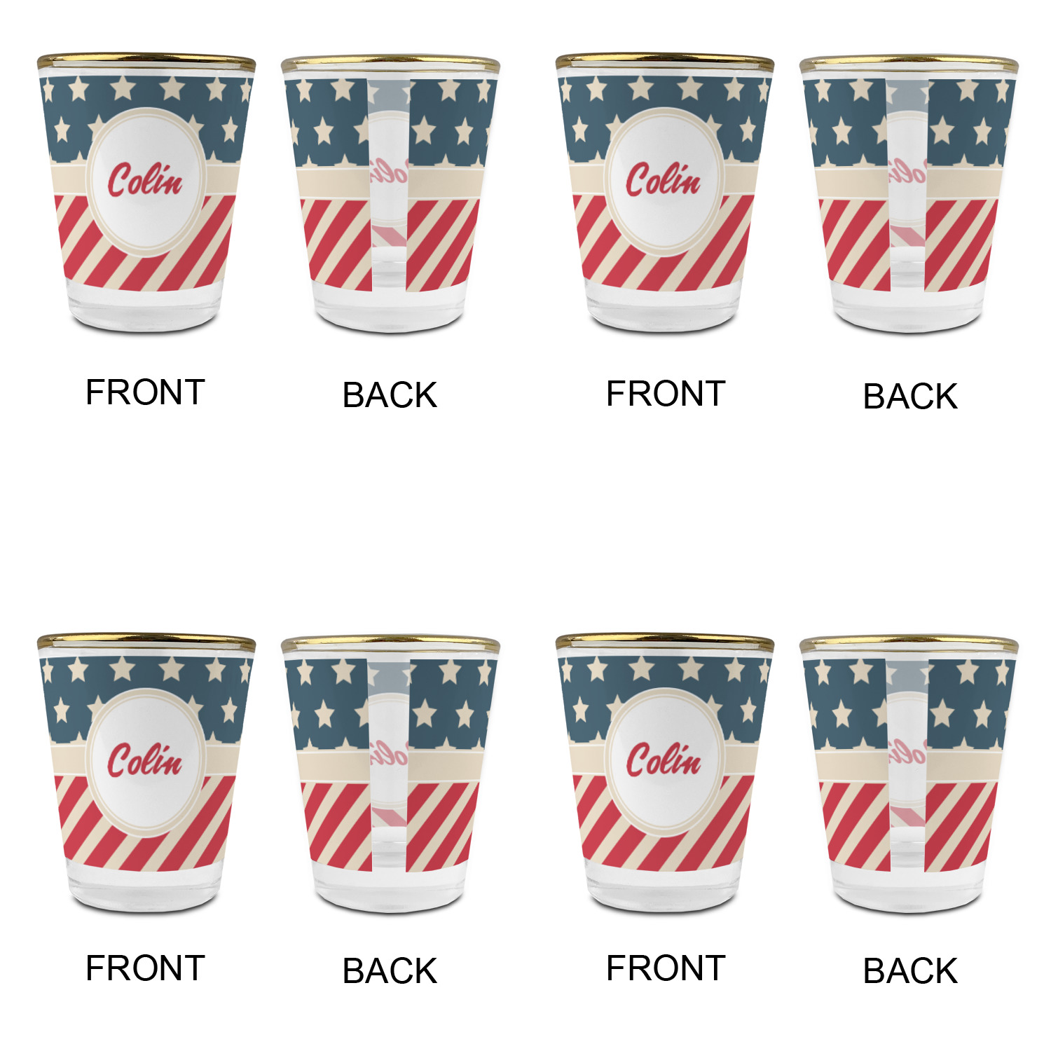 America / USA Designs for Glass Shot Glasses - 1.5 oz - with Gold Rim - Set of 4