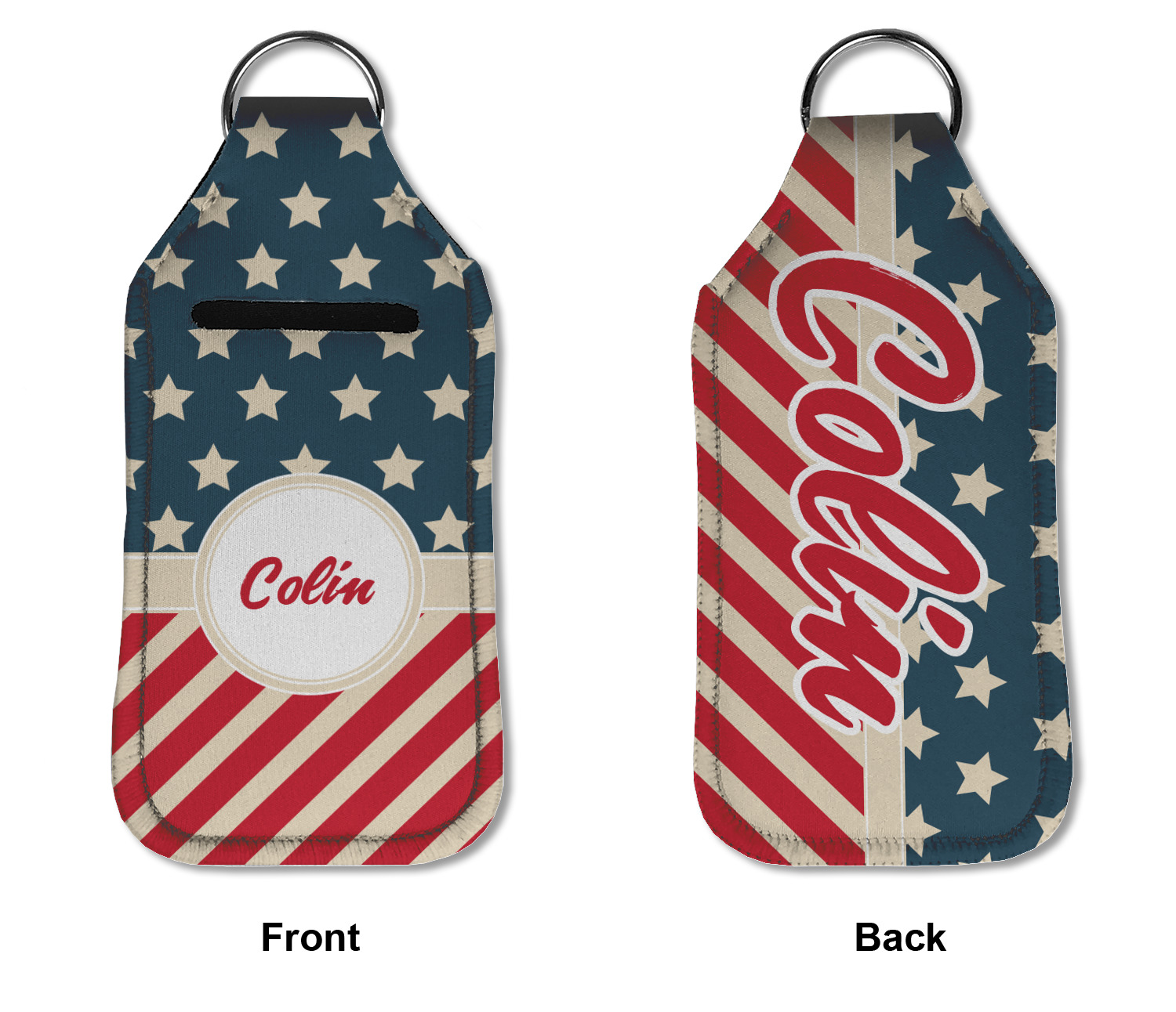 Each hand sanitizer holder comes with its own empty travel-sized, refillable hand sanitizer sure to fit snug in your customized sanitizer case! Our hand sanitizer cases are a durable, yet soft neoprene material sure to last any daily activities or travel agenda. Customize and personalize a hand sanitizer bottle holder with one of our two sizes - small (4.25" x 2.25") or large (5.5" x 2.5"). Each travel sanitizer holder comes with a keyring for attachment on bags, keys, or more!