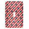 This design is a dark blue, bright red, and cream. The top half is white stars and a dark blue background, while the bottom half is a red and cream diagonal striped background. The backgrounds are divided by a cream ribbon and frame with your personalization in the middle. Have fun decorating with this classic patriotic design.