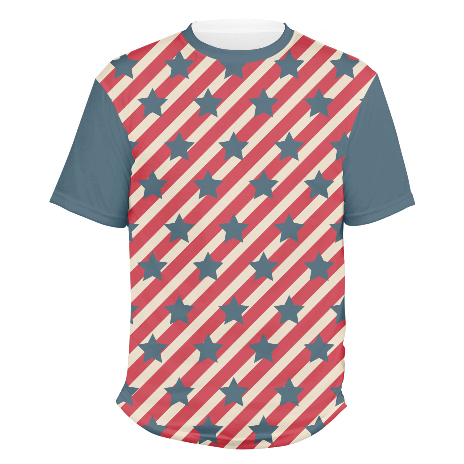 Our mens t-shirts are a lovely jersey knit polyester. They come in 6 different sizes ranging from Small to XXX-Large. These shirts are your basic comfy crew neck t-shirts that look good on anyone. You are able to personalize the sleeves, front, AND back! Isn't that awesome?! Make everything one color or all different. The choice is yours.