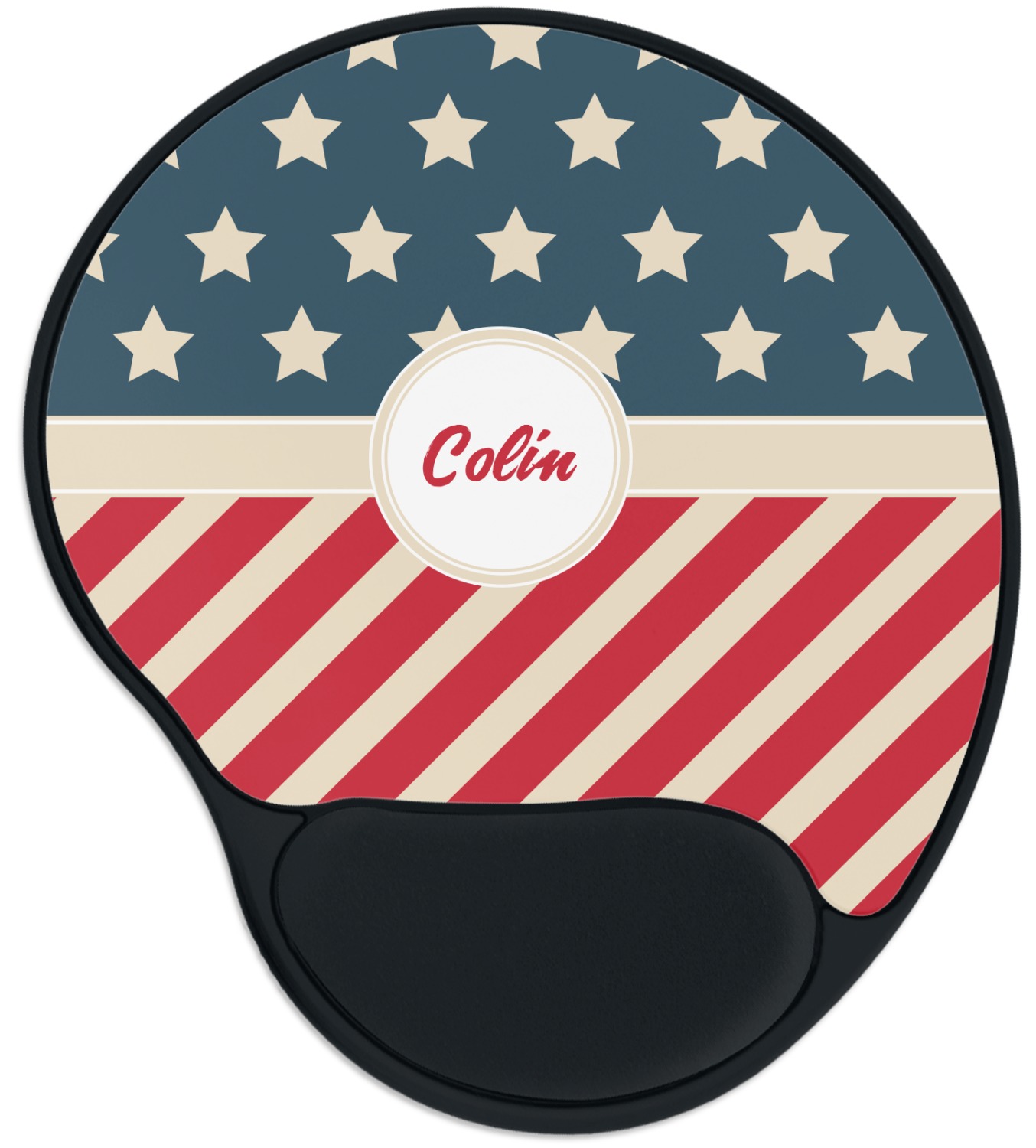 The top of these personalized mouse pads are made from a polyester, while the underside is plastic. The back of these mouse mats include rubber feet to prevent any slippage while in use. A padded wrist support, made from plush memory foam, occupies the bottom section of these computer mouse pads. Your customized design is printed onto the face of this mat, with the remaining sides and support piece colored in black. The mat itself is rounded and measures at 10.25" x 9.13".
