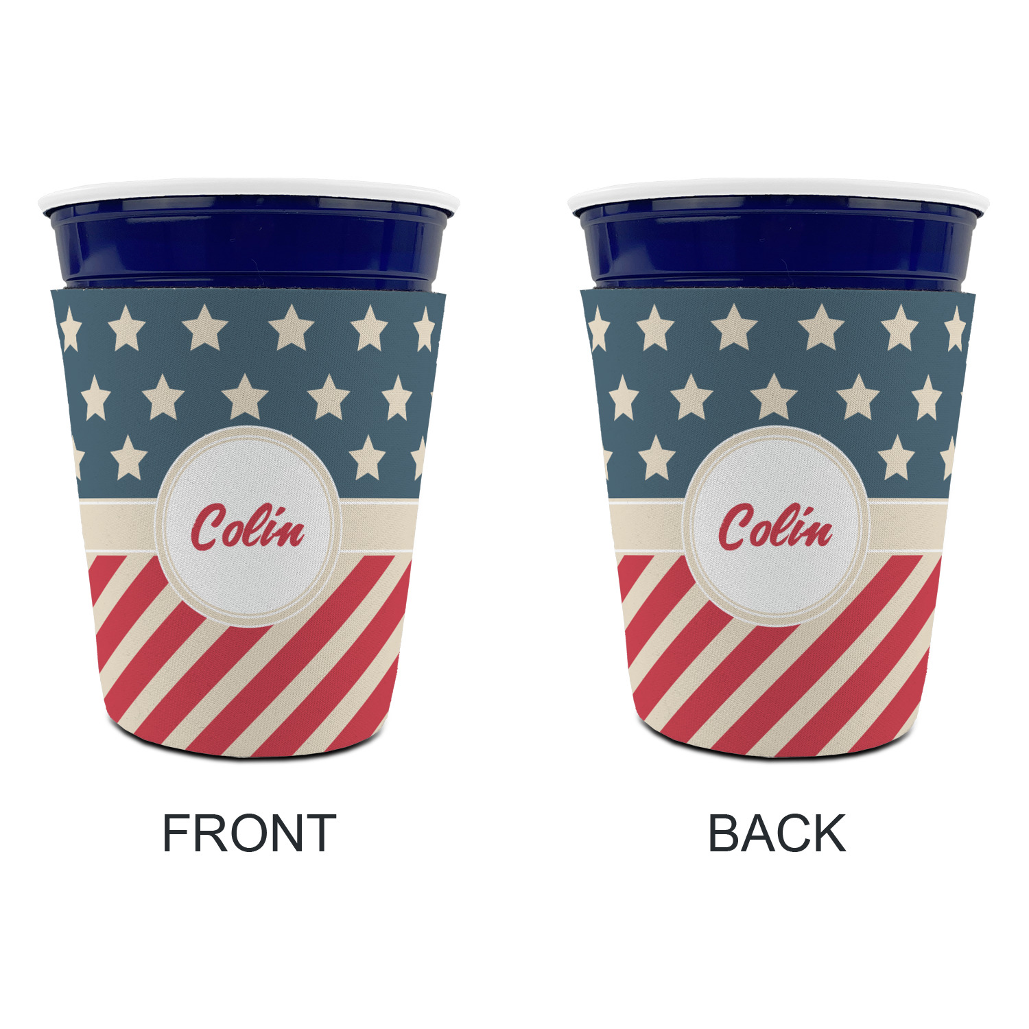 Made from neoprene with a polyester outer fabric and sewn seams, these premium quality party cup sleeves are very durable and will hold up to heavy use. They are available in 2 styles - with a bottom or just a sleeve to go around the outside of the tapered cup. The sleeve covers are about 4" tall and cover about 90% of the classic 16 oz. Solo cup.