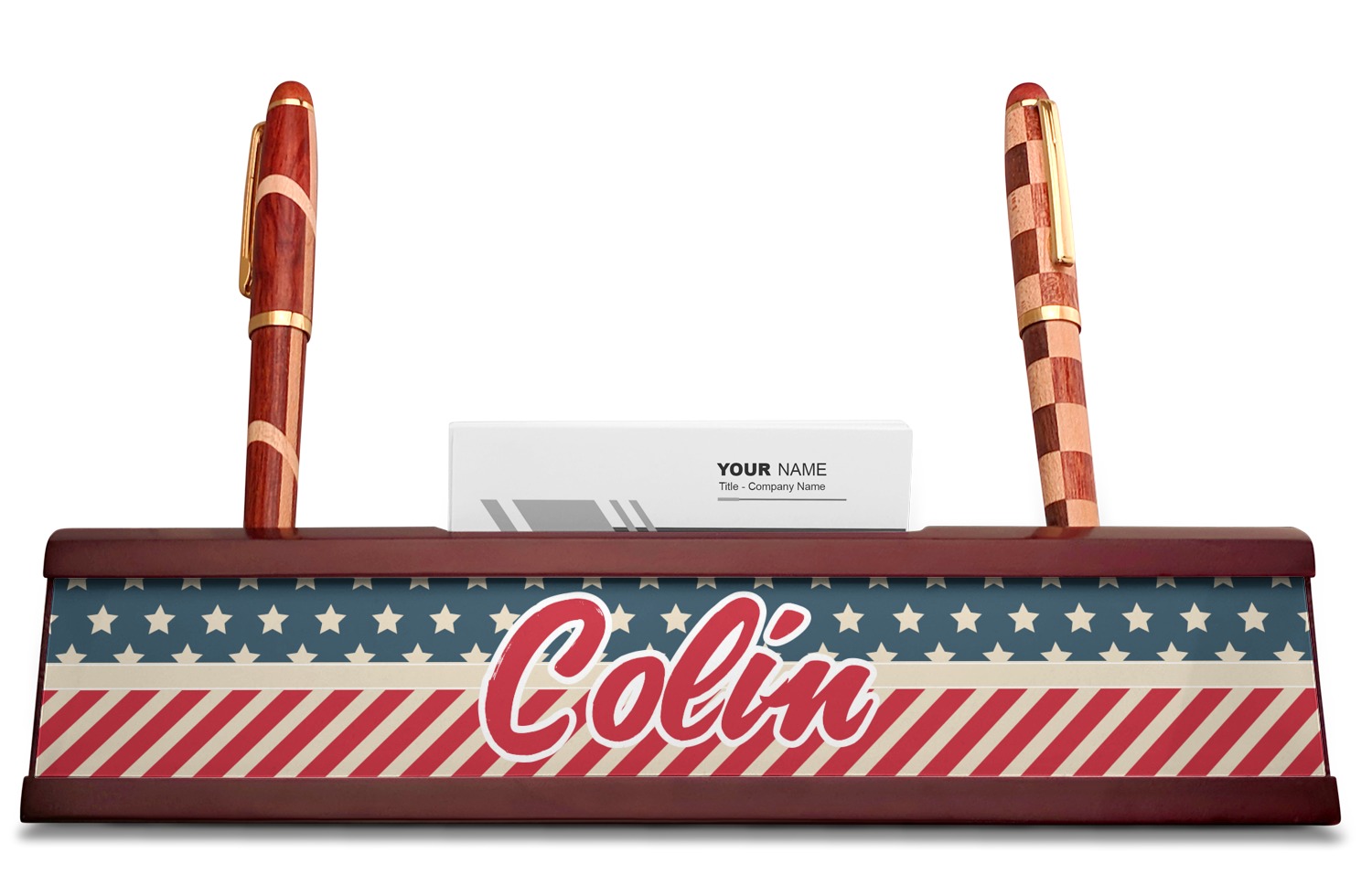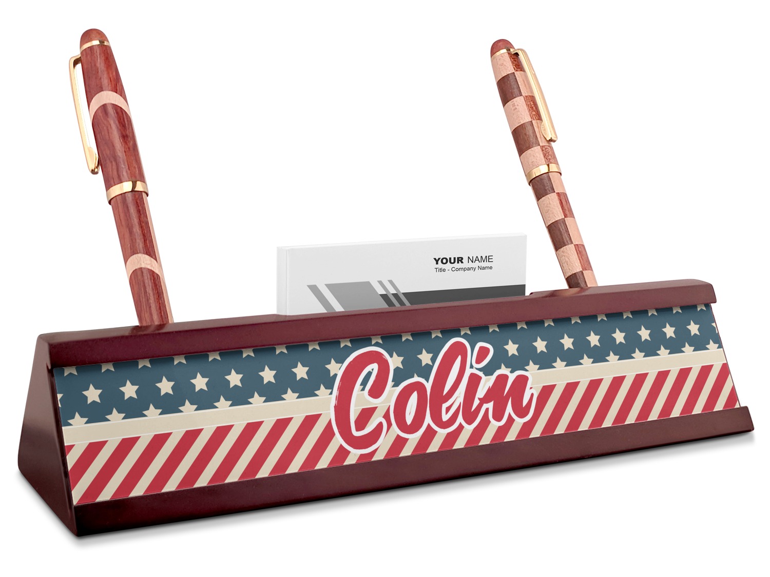 America / USA Designs for Red Mahogany Nameplates with Business Card Holder